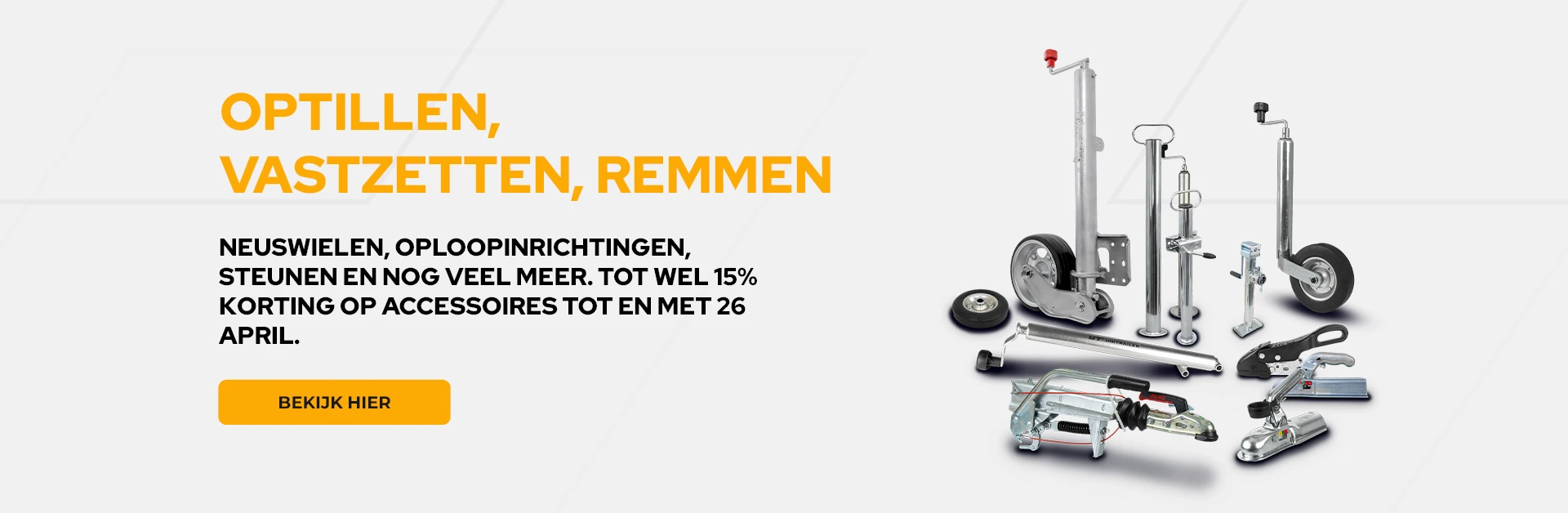 De Unitrailer online winkel werd opgericht om te beantwoorden aan de groeiende behoefte aan onderdelen voor aanhangwagens. Op ons aanbod vind je een breed scala aan producten: neuswielen, velgen, banden, spatborden en spatlappen, koppelingen en oploopremmen, lieren, assen en ophangingsonderdelen, maar ook de aanhangwagens zelf. Heb je betrouwbare accessoires nodig? Ben je geïnteresseerd in verlichting, elektriciteit of ben je op zoek naar onderdelen voor je boot trailer? In onze winkel vind je alle onderdelen die je nodig hebt voor autotrailers, boot trailers, campers en takelwagens. Op één plek, met deskundige klantenservice en snelle verzending.