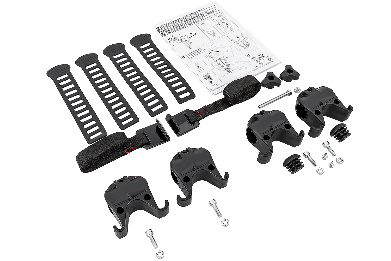 De set bevat ook spanbanden om fietsen vast te zetten.