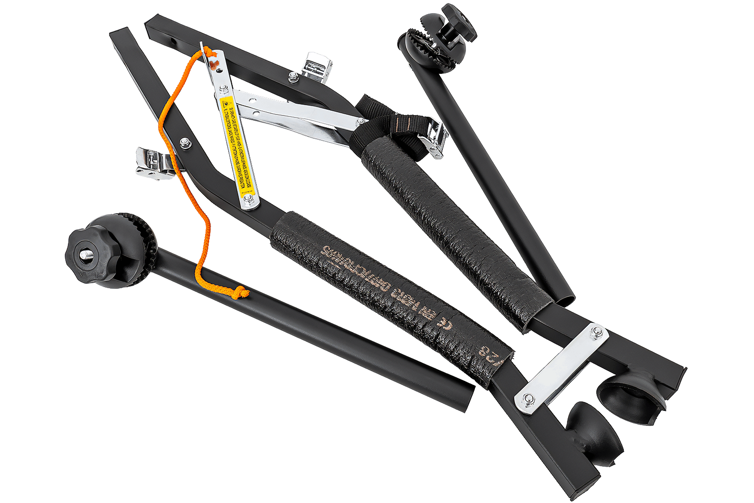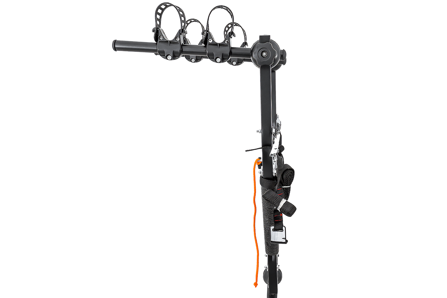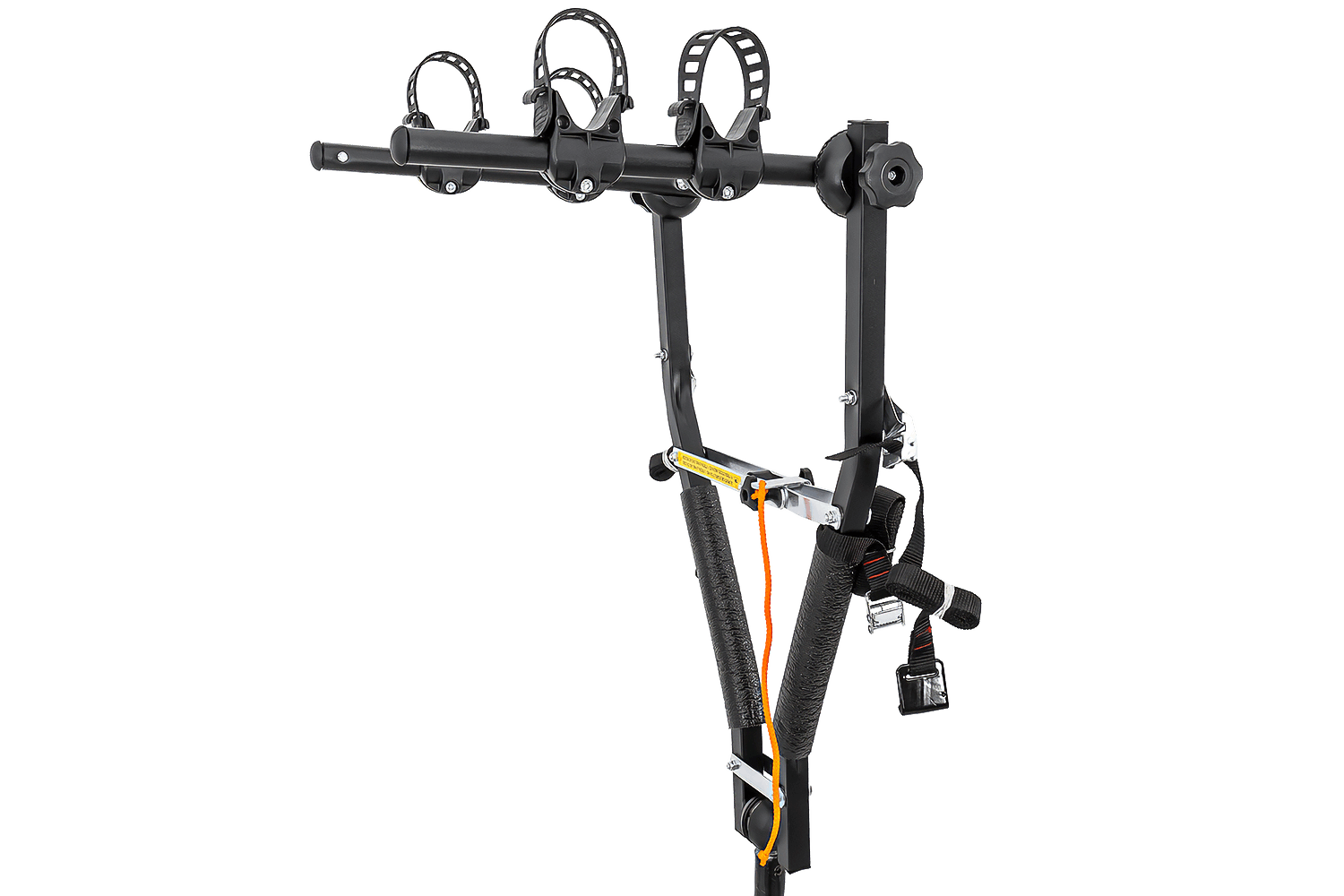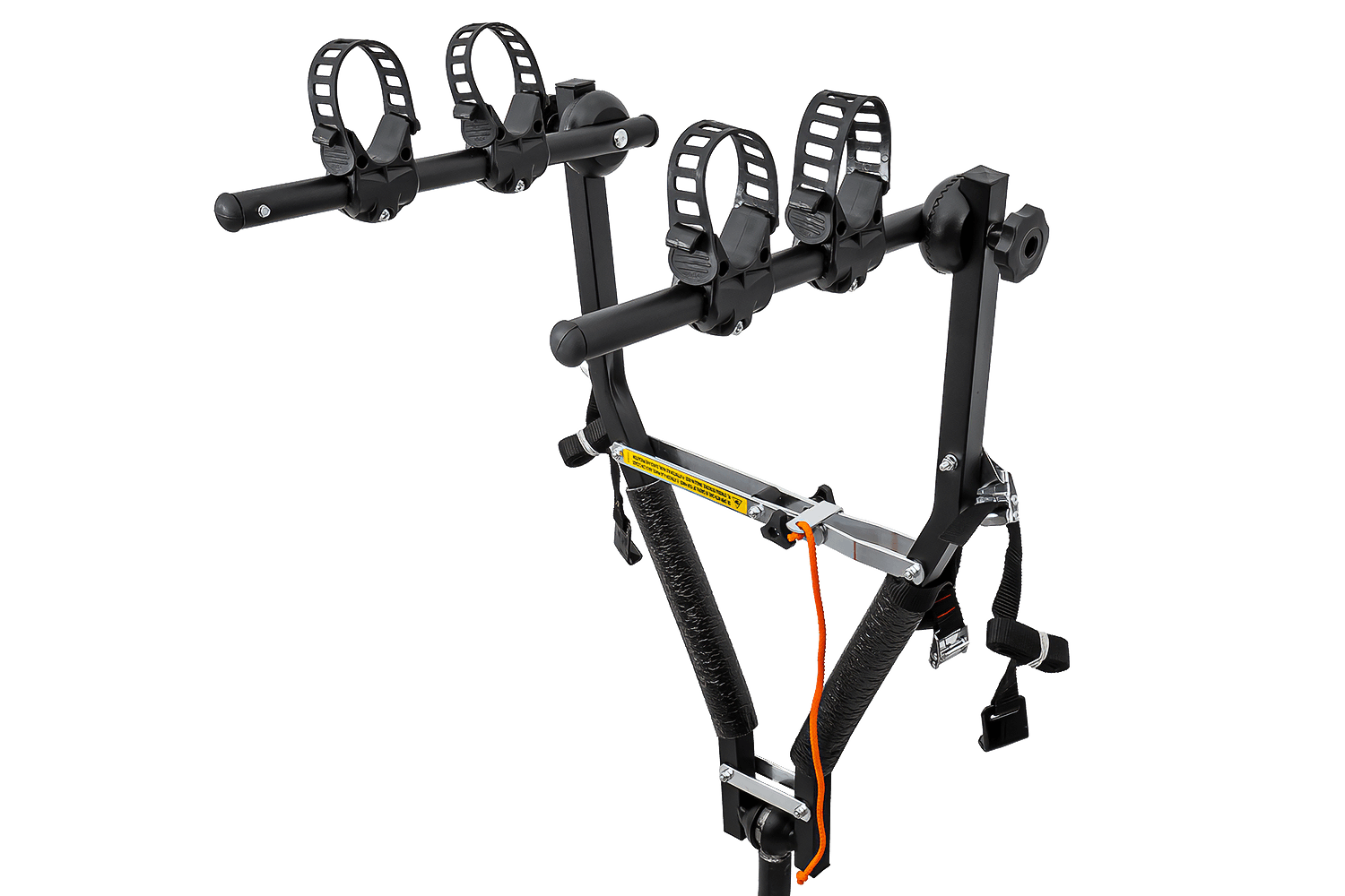 Let op: De drager wordt geleverd zonder extra verlichting. Fietsen die erop gemonteerd zijn, kunnen de verlichting en de kentekenplaat aan het zicht onttrekken. Voor extra veiligheid raden we aan een kentekenplaat met verlichting aan te schaffen. Deze kan met riempjes aan de bovenste fiets worden bevestigd.