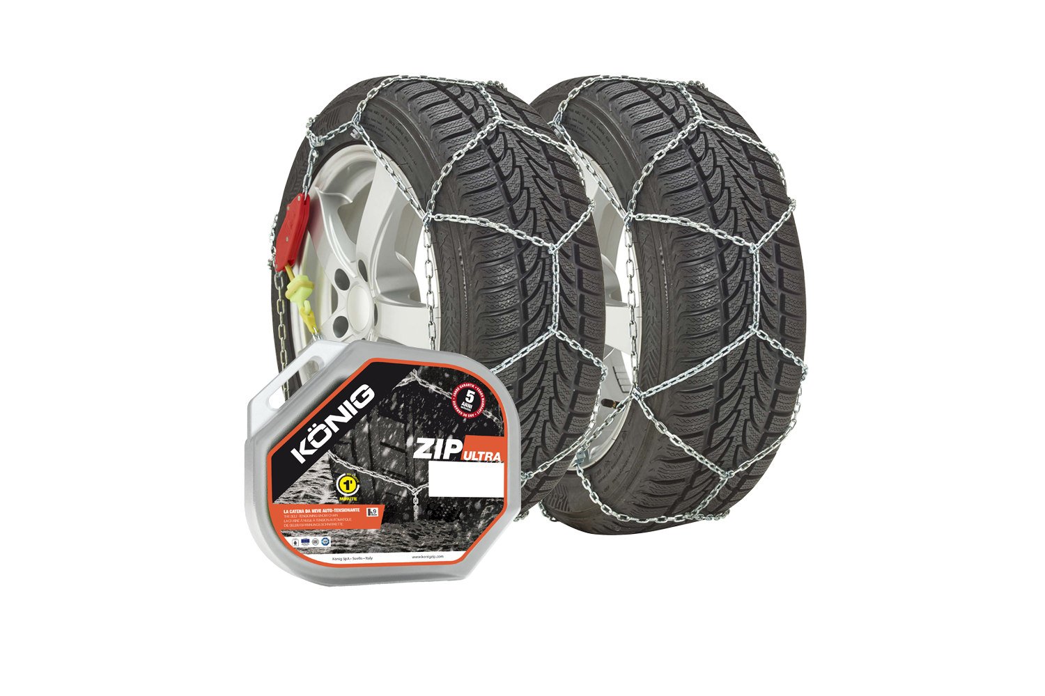 - De zelfspannende kettingen van de Konig Zip 9 Ultra bieden veiligheid, comfort en duurzaamheid in één. 9 mm geharde stalen schakels, snelle installatie en ABS/ESP-compatibiliteit maken ze de perfecte keuze voor veeleisende bestuurders.