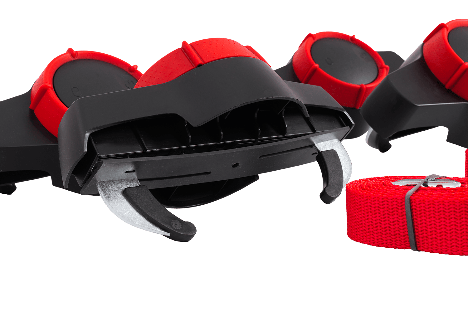 De set bevat ook textielriemen waarmee u bagage op speciale bevestigingspunten kunt vastzetten.