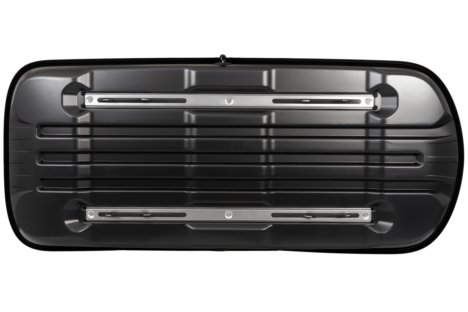 Het ontwerp combineert een draagvermogen van 75 kg met een laag gewicht van 15 kg , wat zorgt voor een balans tussen stevigheid en gebruiksgemak. De box is gemaakt van duurzaam, uv- en weerbestendig ABS- kunststof en de bodem is extra verstevigd met metalen lamellen die de stevigheid en stabiliteit van de box vergroten.