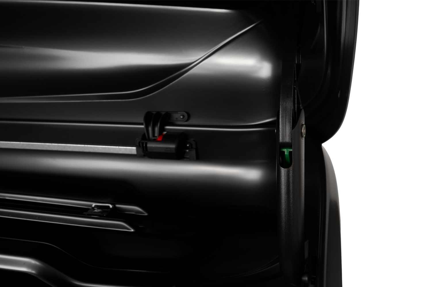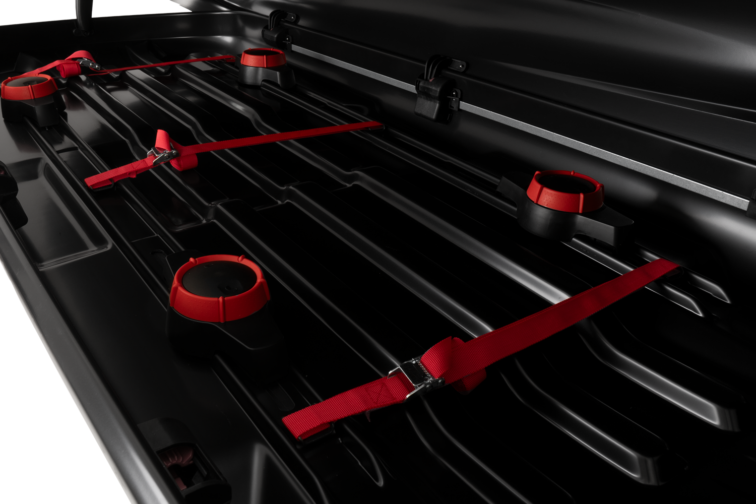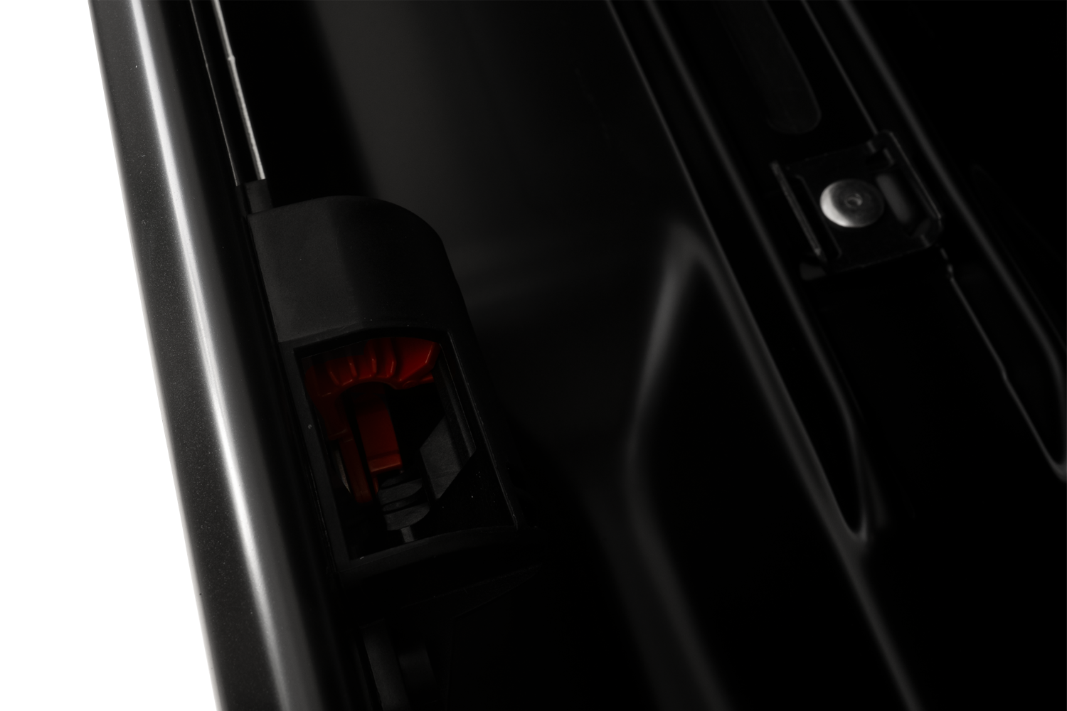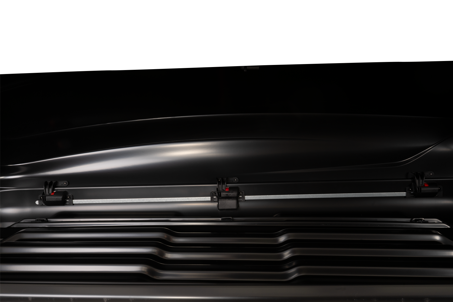 Het gestroomlijnde ontwerp vermindert de luchtweerstand en het geluid tijdens het rijden. De tweezijdige opening maakt het in- en uitladen van bagage gemakkelijk, terwijl veeractuatoren zorgen voor comfortabel openen en sluiten van het deksel. Een centrale driepuntsvergrendeling, samen met een beveiligingssysteem dat voorkomt dat de sleutel wordt verwijderd totdat de koffer goed gesloten is, garandeert de veiligheid van uw bezittingen.