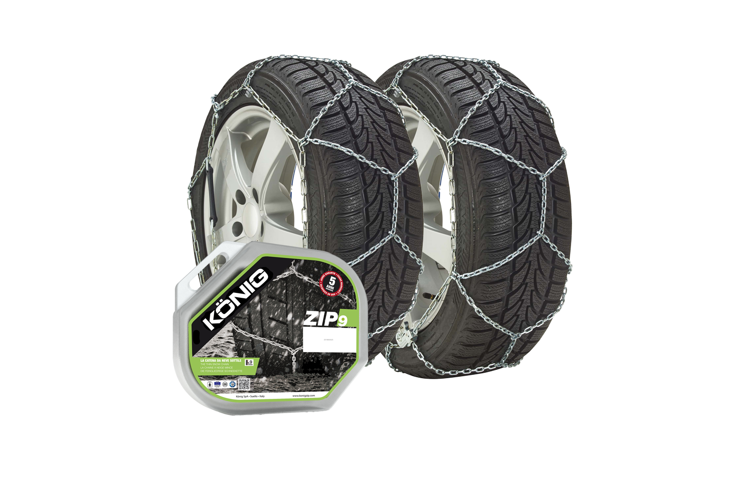 • Konig Zip 9 zijn hoogwaardige sneeuwkettingen voor personenauto's. Met een asymmetrisch ruitpatroon bieden ze stabiliteit, voertuigbeheersing en veiligheid op sneeuw en ijs. Ze zijn eenvoudig te monteren en uitzonderlijk duurzaam.