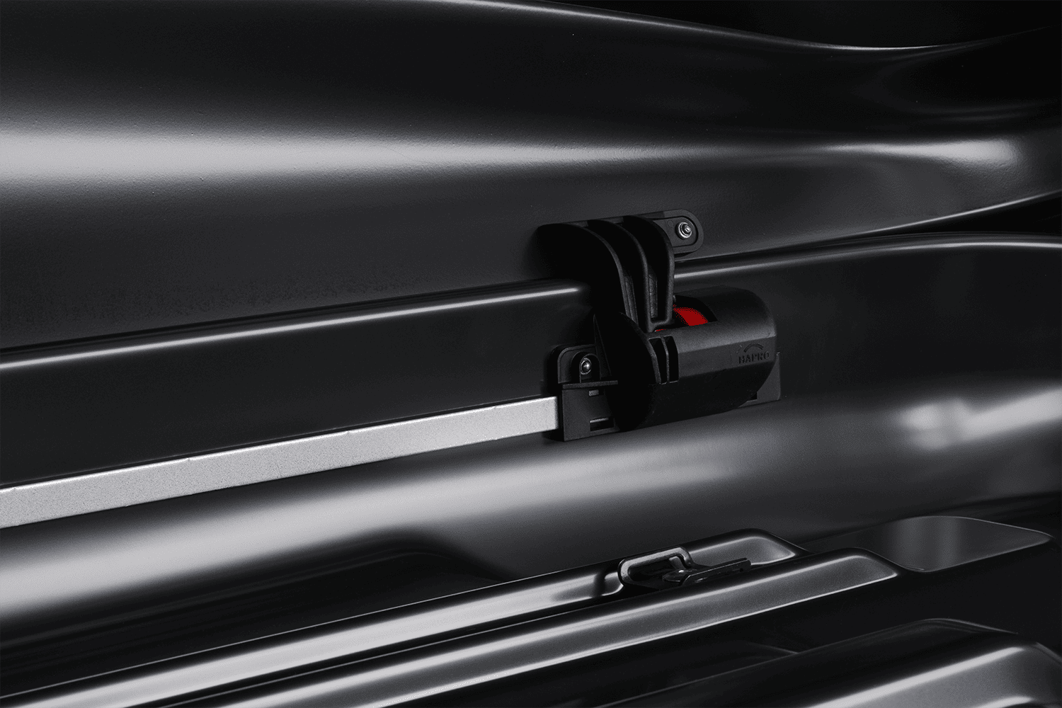 Met een buitenlengte van 215 cm biedt de box gemakkelijk plaats aan snowboards of ski's tot 210 cm, evenals koffers, kinderwagens en andere reisuitrusting. De inhoud van 530 liter biedt ruimte aan een aanzienlijke hoeveelheid bagage en het laadvermogen van 75 kg bij een leeggewicht van 21,5 kg biedt een optimale combinatie van duurzaamheid en gebruiksgemak.