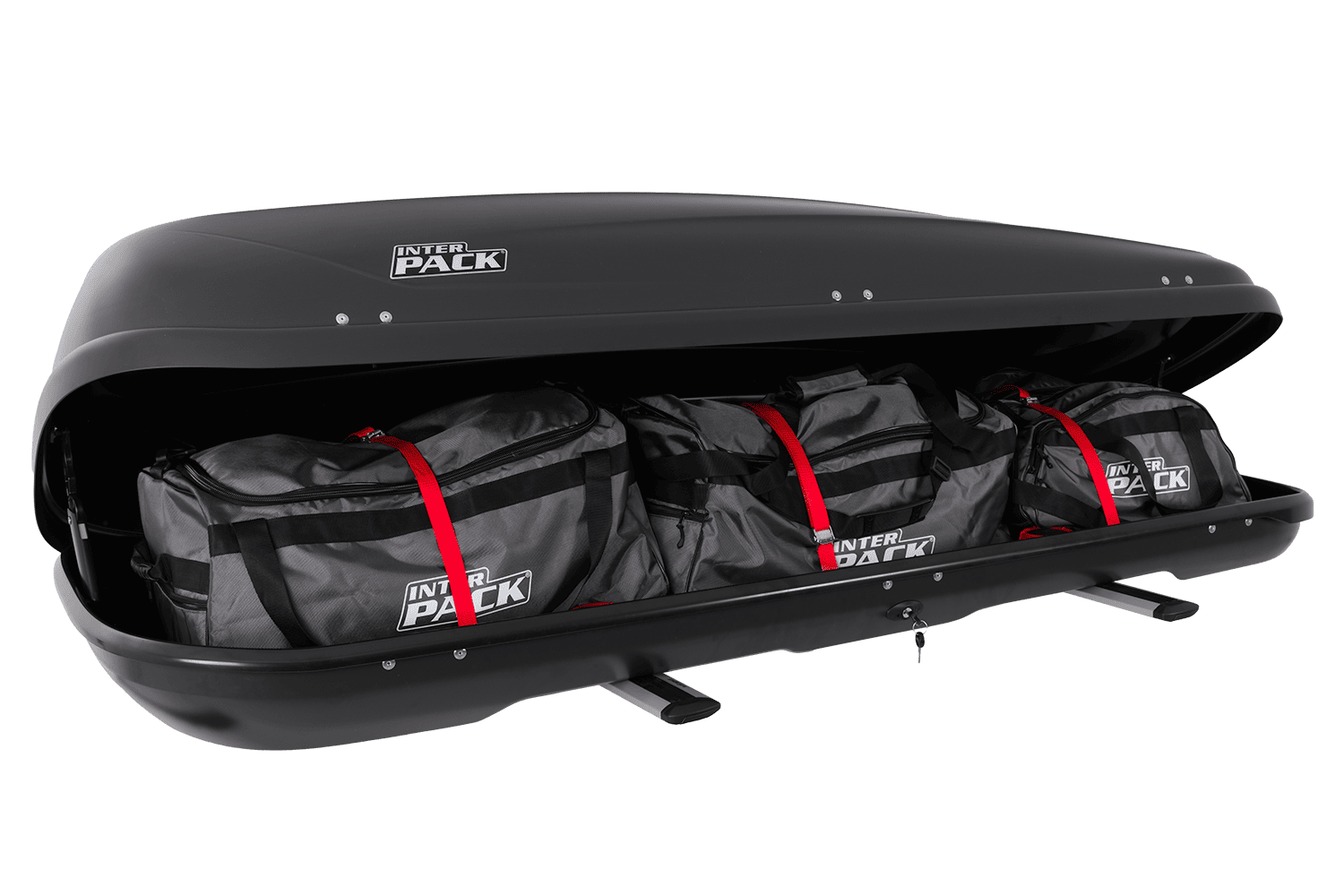- Inter Pack Traxer 8.6 dakkoffer (mat antraciet) – 530 l inhoud, 75 kg laadvermogen. Geschikt voor ski's tot 210 cm, koffers en wandelspullen. Dubbelzijdige opening, Premium Fit, centrale vergrendeling en een verstevigde bodem zorgen voor comfort en veilig