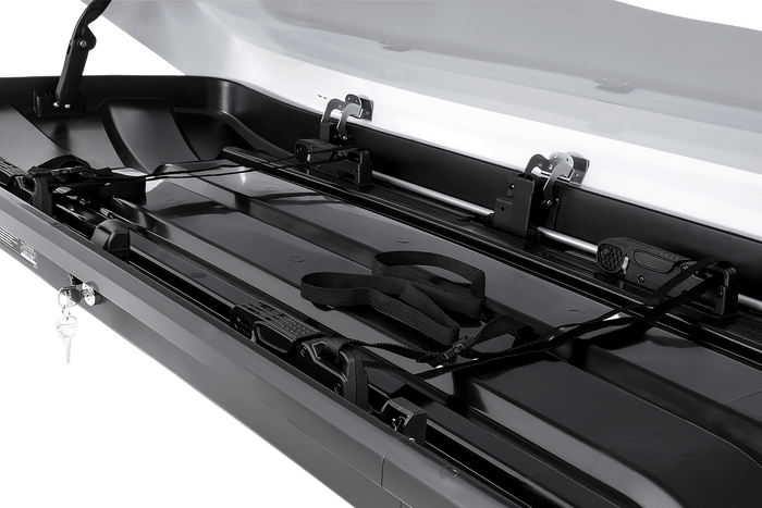 Met binnenafmetingen van 183 x 21 x 65 cm blijft de box ruim en praktisch ondanks zijn lage profiel. De aerodynamische lijnen en glanzende afwerking maken de Skugga perfect passend bij het silhouet van moderne auto's.