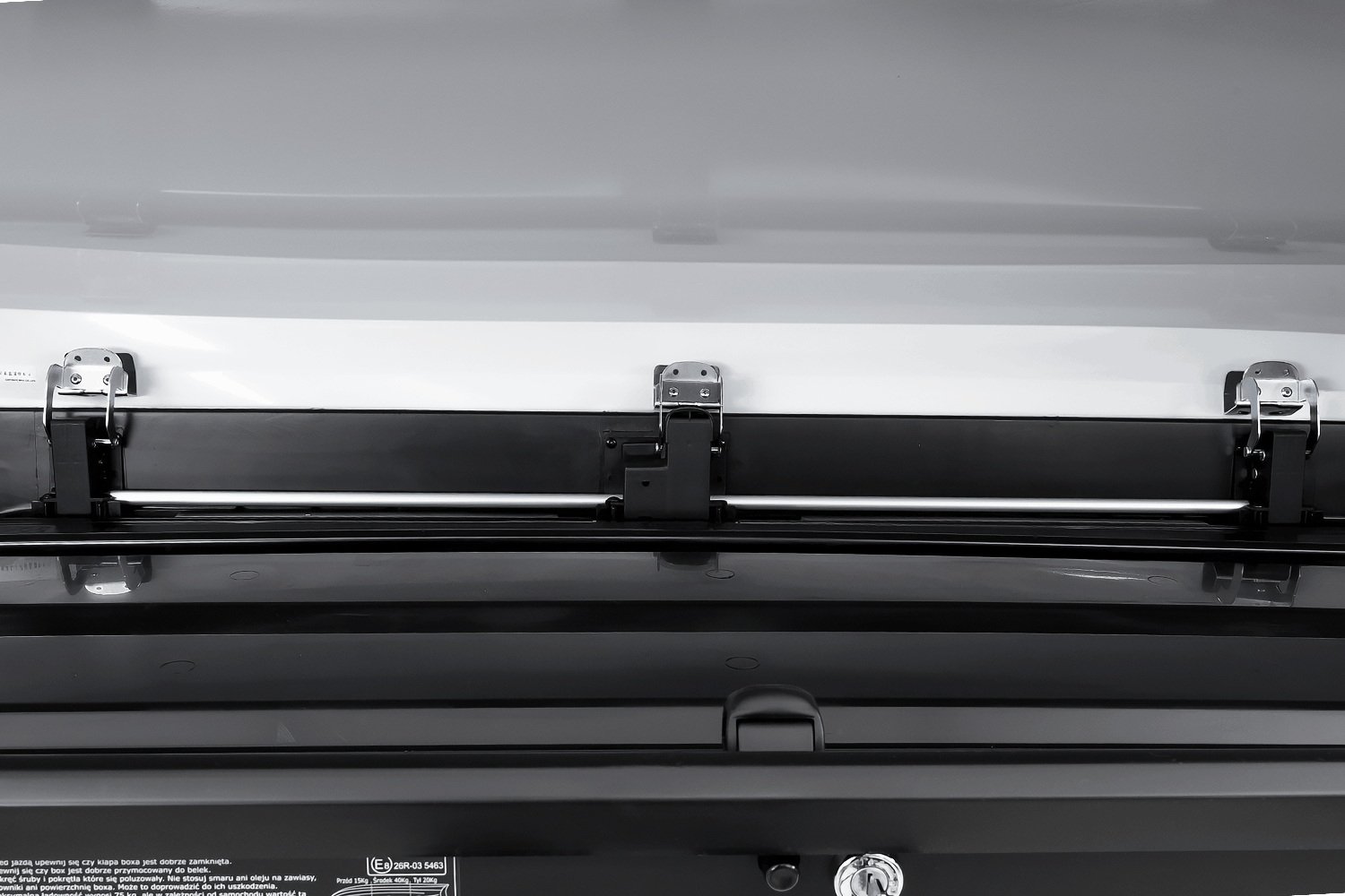 De Skugga onderscheidt zich door zijn moderne design en duurzame constructie van hoogwaardig, uv- en weerbestendig ABS . Hij weegt slechts 19 kg en heeft een draagvermogen van 75 kg . De bodem is speciaal geprofileerd en verstevigd voor extra duurzaamheid. Het tweezijdige openingssysteem maakt het laden eenvoudig en de driepuntsvergrendeling met het extra SNAP LOCK -systeem garandeert veiligheid – een knop op het slot springt naar buiten wanneer het deksel goed gesloten is en geeft aan dat het klaar is om te reizen.