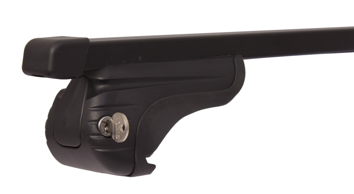 De set bevat stalen balken van 125 cm en vier dakbevestigingen. De bevestigingen zijn ontworpen om beschadiging of krassen op de leuningen te voorkomen.