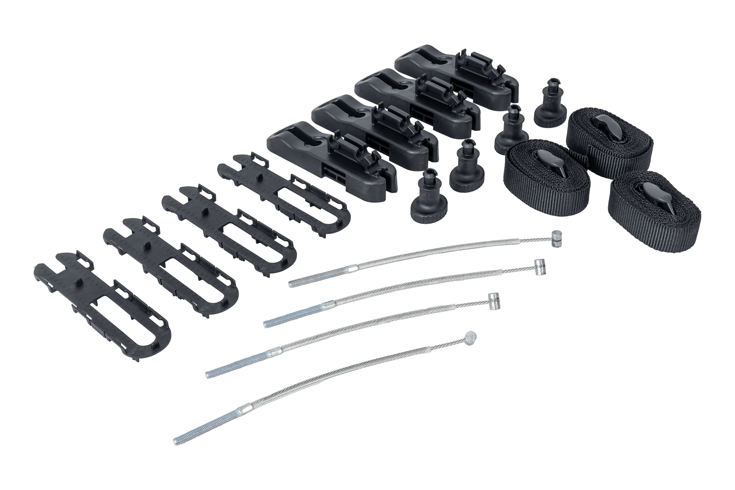 De houder is geschikt voor dakdragers met een afstand van 62 tot 105 cm . Een stalen kabelmantel beschermt de dakdrager tegen krassen en beschadigingen.