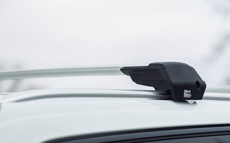 De set bestaat uit stille Mont Blanc Xplore aluminium stangen, voorzien van een T-bevestigingskanaal . Hierdoor kunt u snel en veilig accessoires (bijv. fietsendragers, skidragers of dakkoffers) monteren. De voeten kunnen worden vastgezet met sloten die speciaal voor auto's zijn ontworpen.