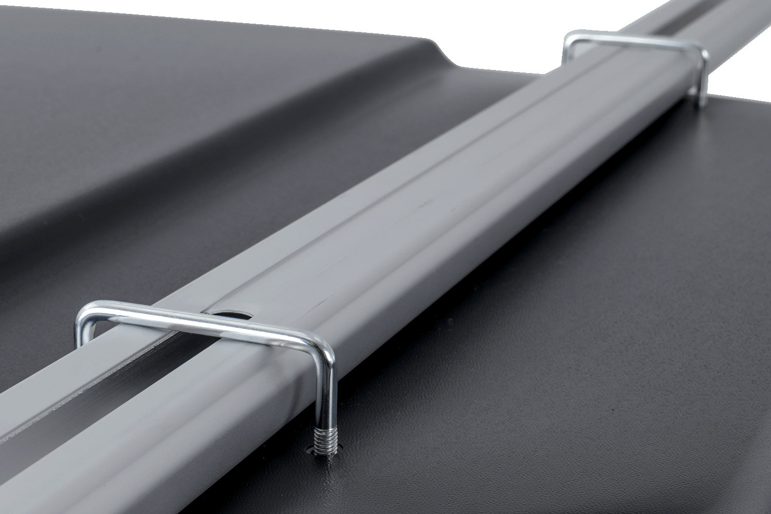 De doos wordt gemonteerd met behulp van U-klemmen die passen op rechthoekige of ovale dakbalken.