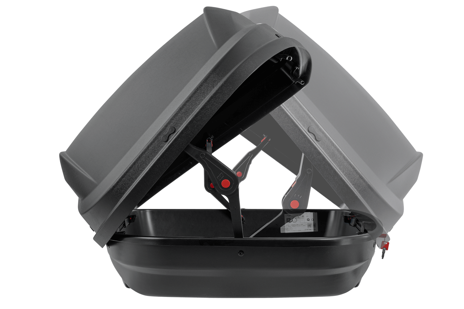 • Inter Pack Stella 440 dakkoffer (matzwart) – inhoud 360 l, lengte 146 cm, laadvermogen 75 kg, gewicht 10,4 kg. Tweezijdige opening, veerbelaste cilinders en centrale vergrendeling verhogen het gemak en de veiligheid. Montage met U-beugels of Flexi Fit.