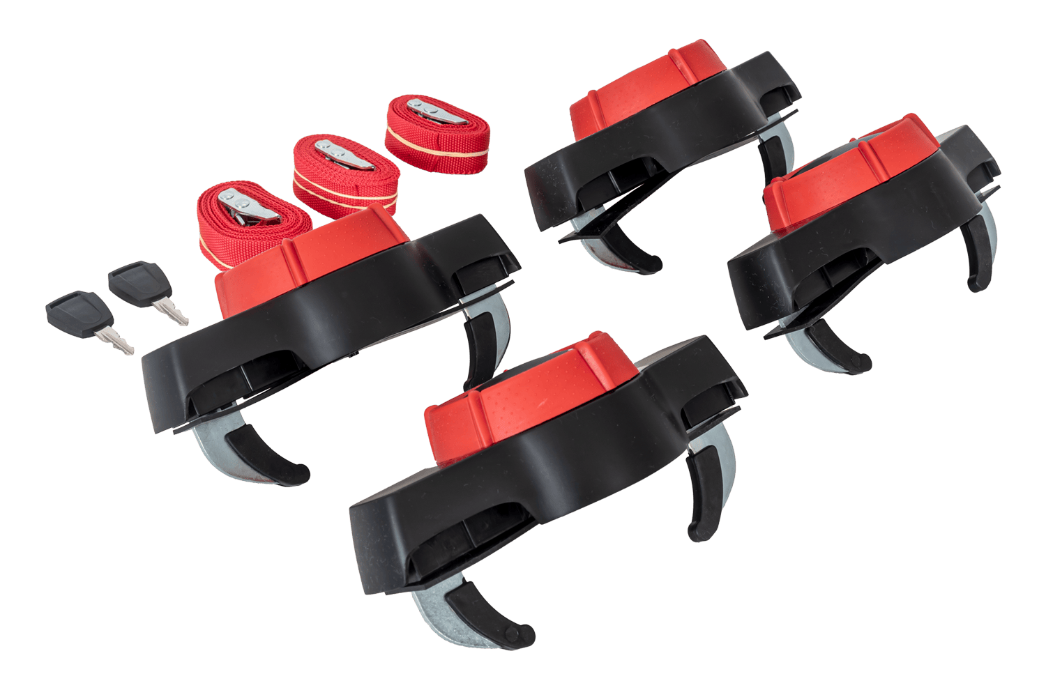 De set bevat ook textielriemen waarmee u de te vervoeren bagage stevig kunt vastzetten.