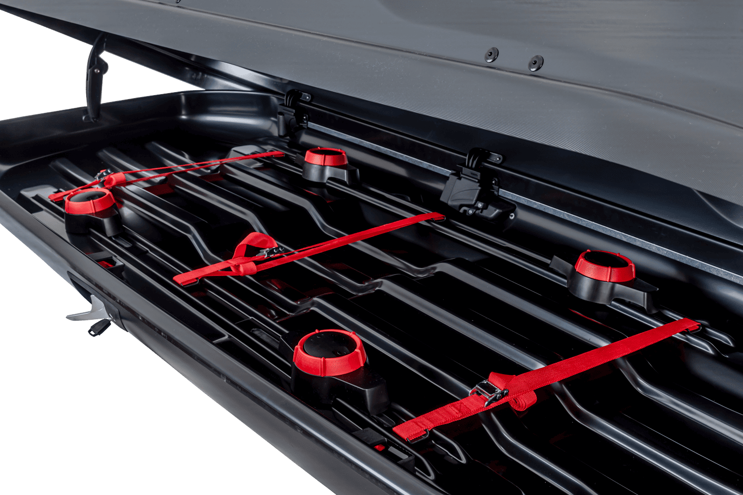 • Atera Casar XL dakkoffer – inhoud 530 l, lengte 215 cm, laadvermogen 75 kg, gewicht 21,5 kg. Geschikt voor koffers, tassen, ski's en snowboards tot 210 cm lang. Dubbelzijdige opening, Premium Fit met dynamometer en Safe Guard centrale vergrendeling garand