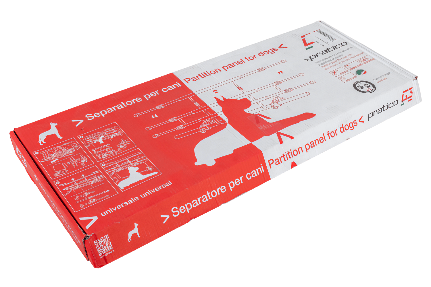 - Het Pratico-rooster scheidt de kofferbak veilig van de passagiers. Volledig verstelbaar en past in de meeste auto's. Perfect voor reizen met een hond – stabiel, duurzaam en eenvoudig te installeren. Afmetingen: lengte 80-140 cm, hoogte 30-45 cm.