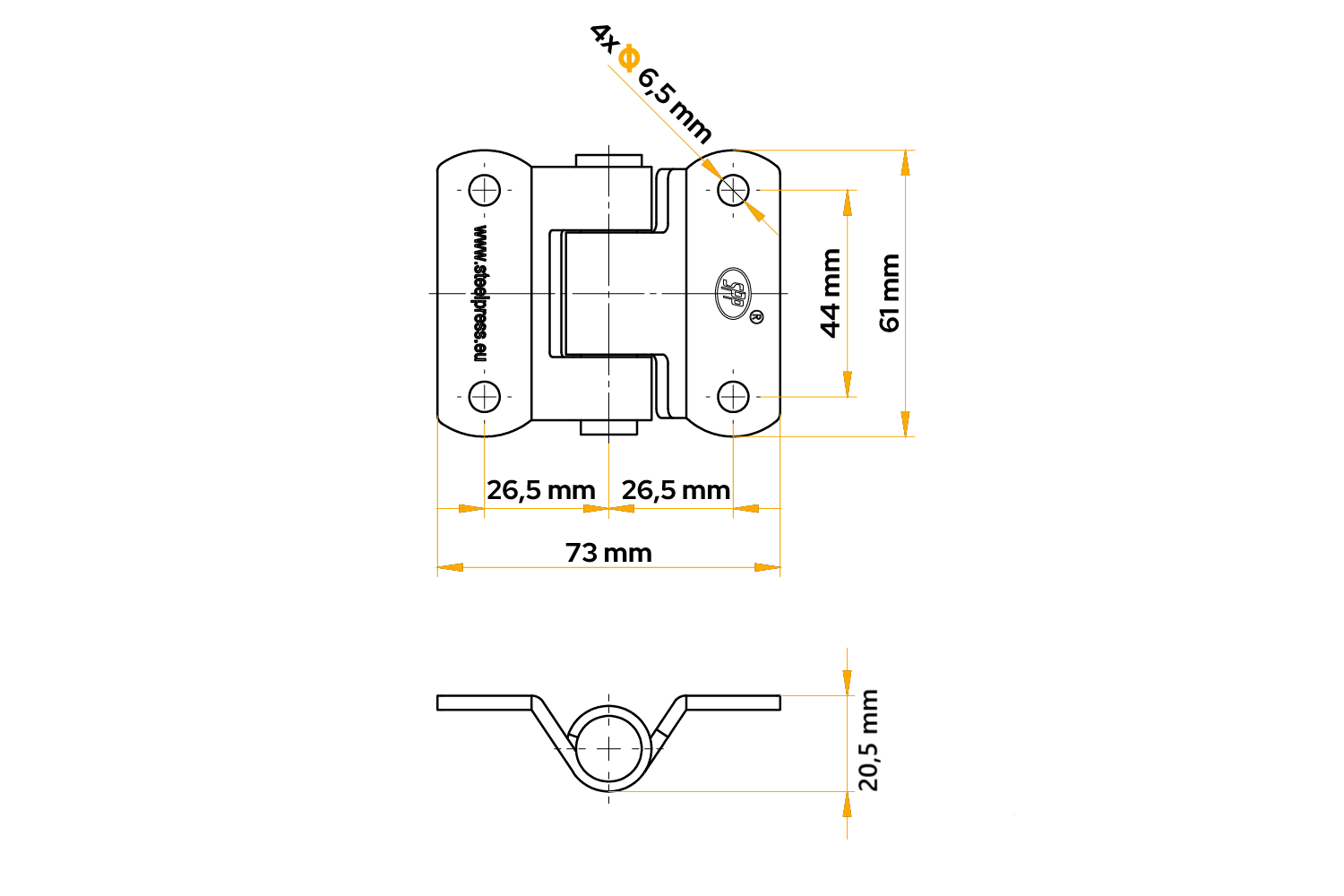 Het ZW-02.40 zijscharnier van STEELPRESS is een robuust en duurzaam onderdeel voor aanhangwagens, ontworpen voor de montage van zijpanelen op vracht-, landbouw- en bedrijfswagens. Het scharnier is 73 mm lang en 61 mm breed , waardoor het veelzijdig en eenvoudig te monteren is op verschillende soorten aanhangwagens. De nauwkeurige afwerking zorgt voor een stabiele scharnierwerking en vereenvoudigt het openen en sluiten van de zijpanelen, wat de functionaliteit van de gehele aanhangwagenstructuur verbetert.