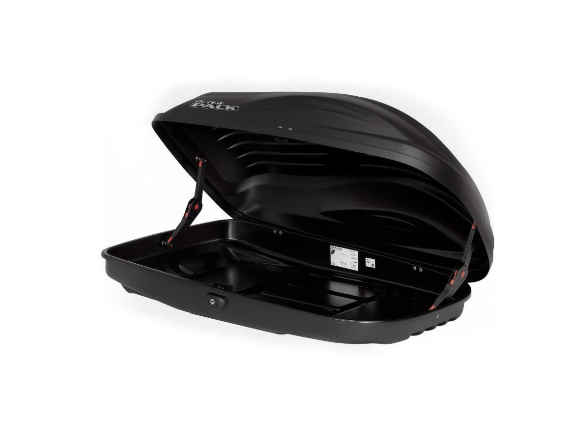 - Inter Pack Stella 370 dakkoffer (matzwart) – 240 l inhoud, 134 cm lengte, 50 kg laadvermogen, 7 kg gewicht. Compact en lichtgewicht, geschikt voor hatchbacks en sedans. Flexi Fit, centrale vergrendeling en veerbelaste actuatoren zorgen voor gemak en veili
