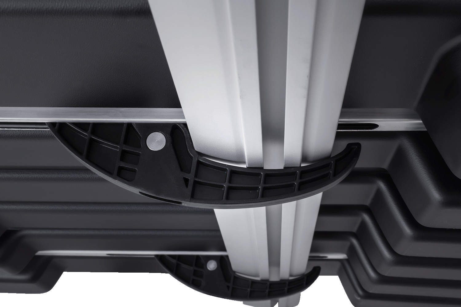De constructie is gemaakt van uv- en weerbestendig ABS-kunststof, wat duurzaamheid en een lange levensduur garandeert. Met een gewicht van 16 kg biedt de koffer een maximaal laadvermogen van 75 kg . De bodem is verstevigd met metalen strips voor extra stevigheid, en de tweezijdige opening maakt gemakkelijk laden en lossen vanaf beide zijden van de auto mogelijk. Een centraal driepuntsvergrendelingssysteem en een systeem dat voorkomt dat de sleutel wordt verwijderd voordat het deksel goed gesloten is, zorgen voor veiligheid tijdens elke reis.