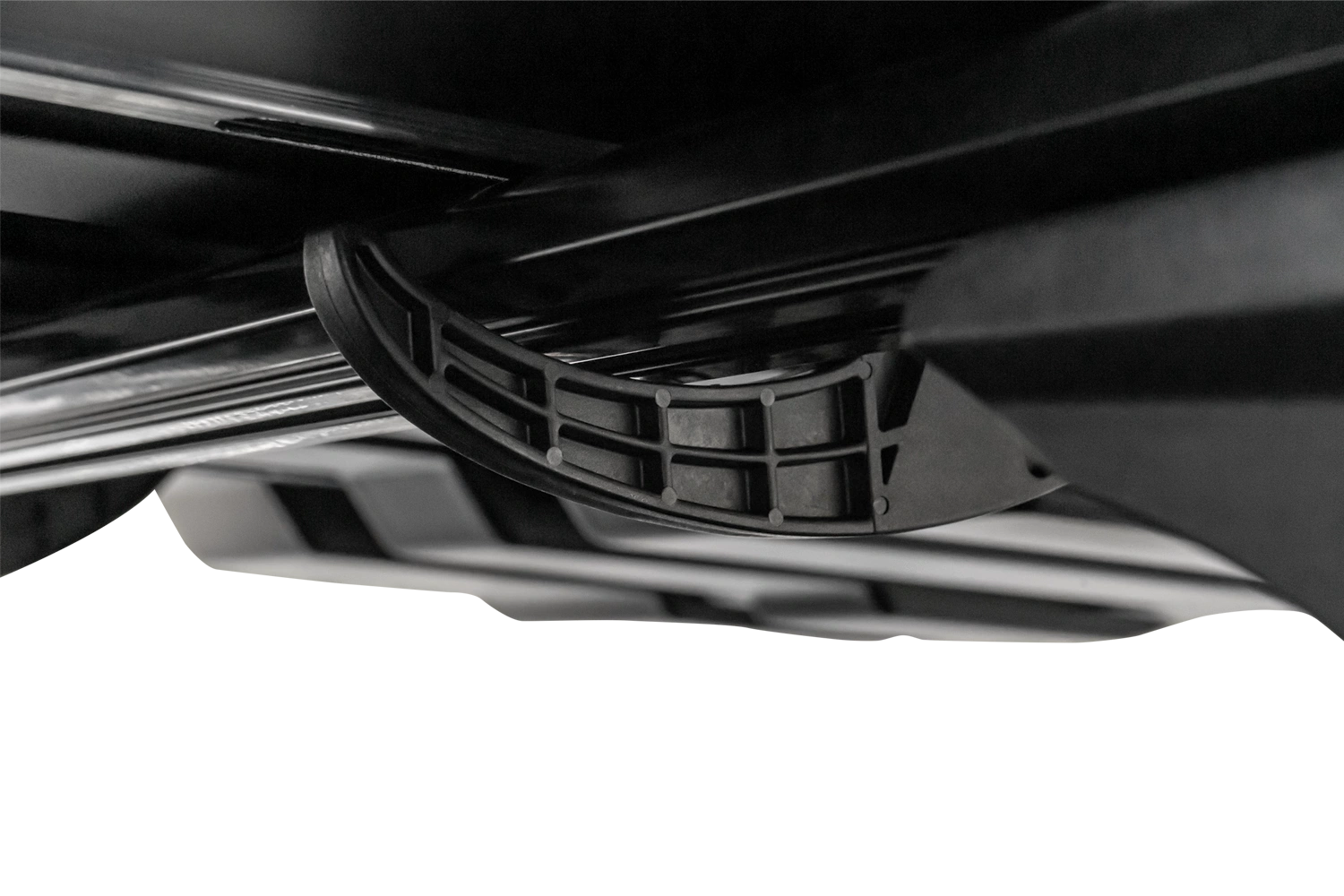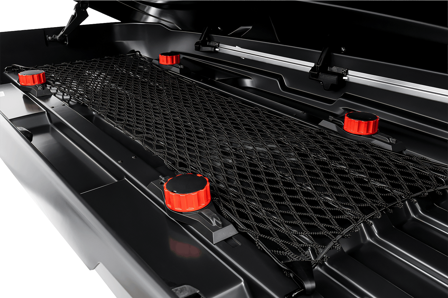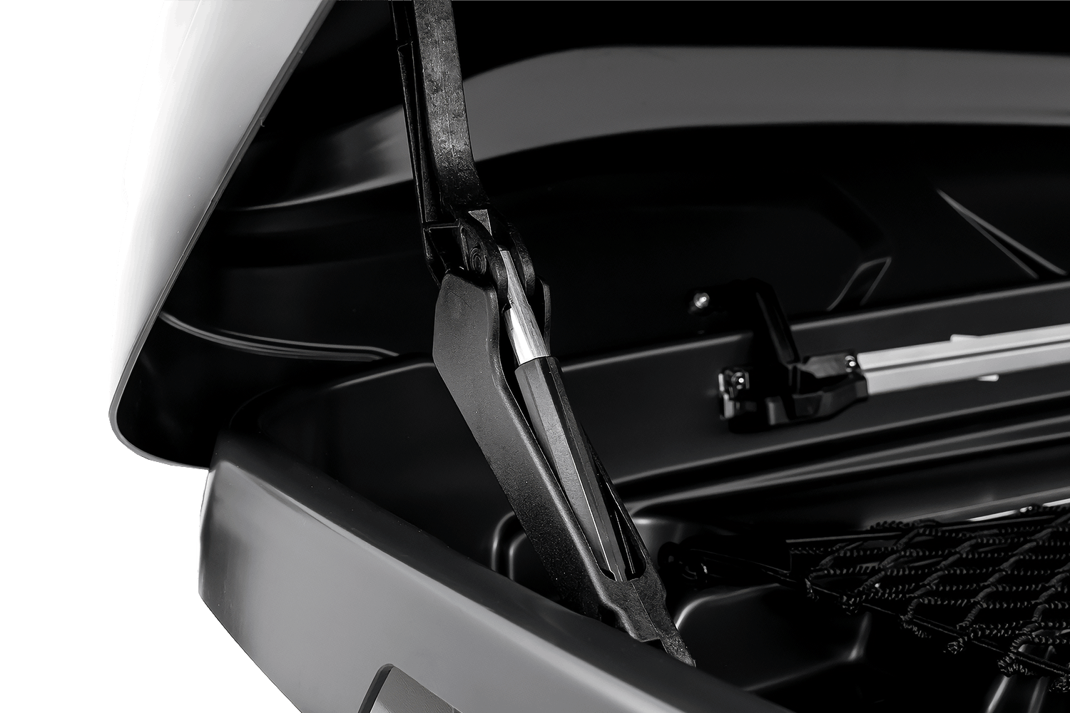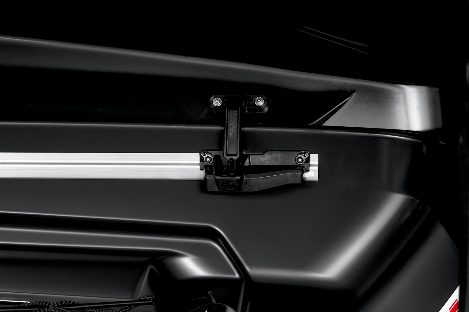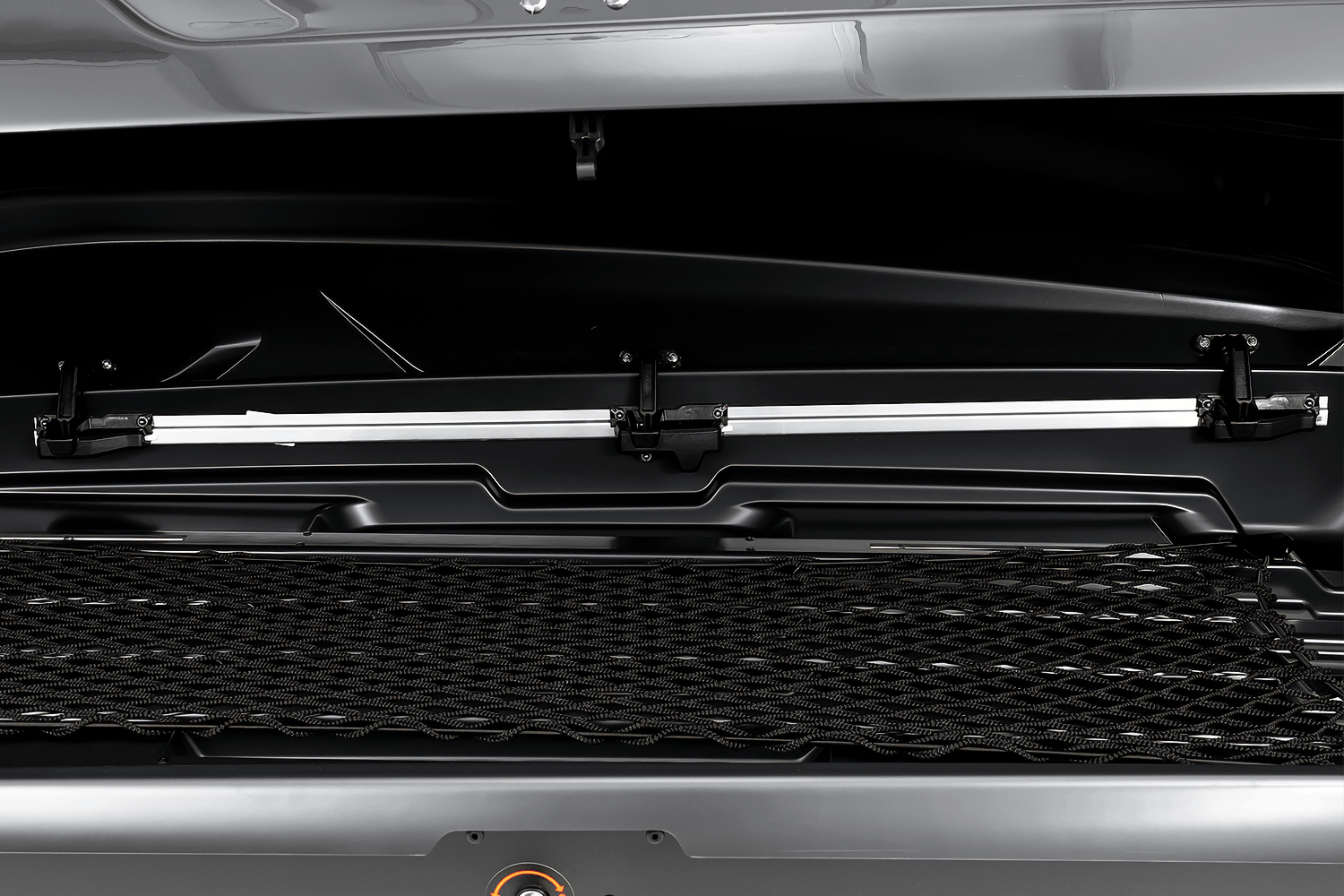 Dankzij de verplaatsbare rails is de box aan te passen aan dakdragers met een afstand van 46 tot 115 cm . Een ingebouwde dynamometer geeft een correcte montage aan, voorkomt te strak aandraaien en beschermt zowel de box als de dakdrager.