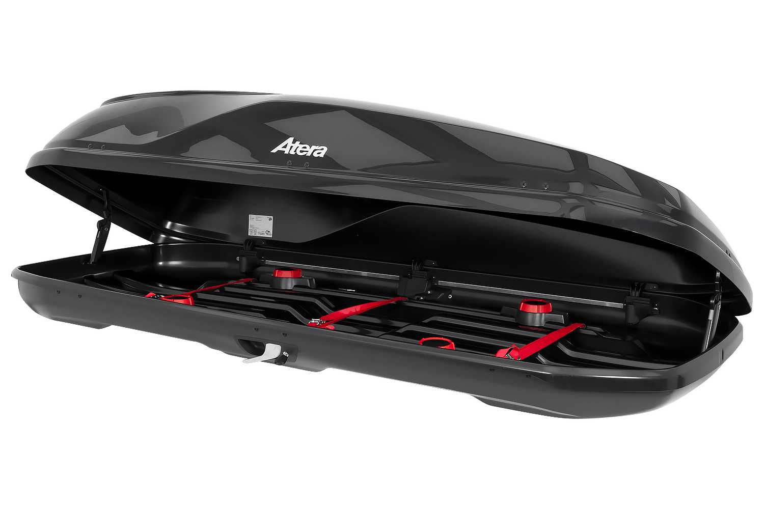 - Atera Casar XL dakkoffer – inhoud 530 l, lengte 215 cm, laadvermogen 75 kg, gewicht 21,5 kg. Geschikt voor koffers, tassen, ski's en snowboards tot 210 cm. Dubbelzijdige opening, Premium Fit met dynamometer en centrale vergrendeling voor extra veiligheid.