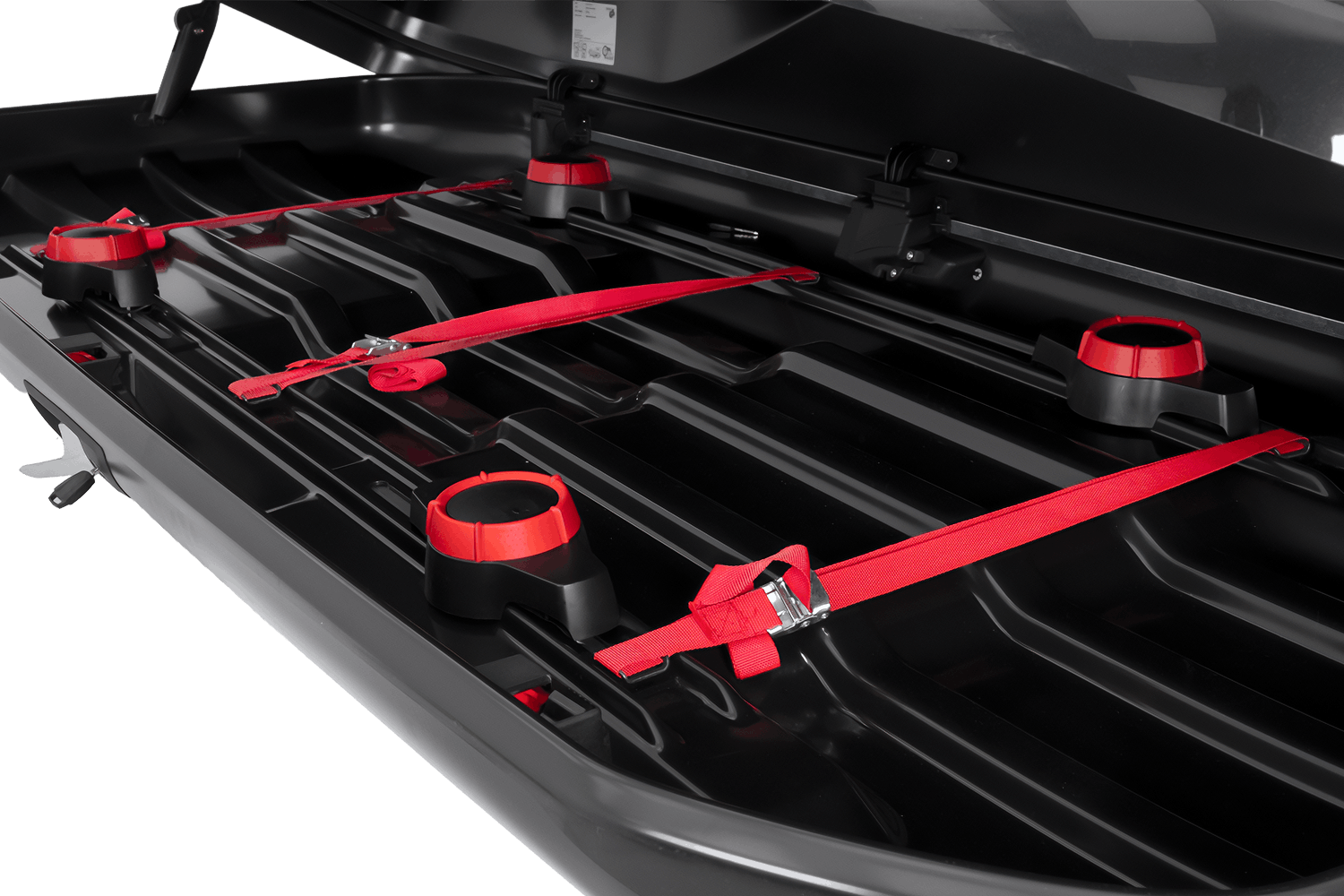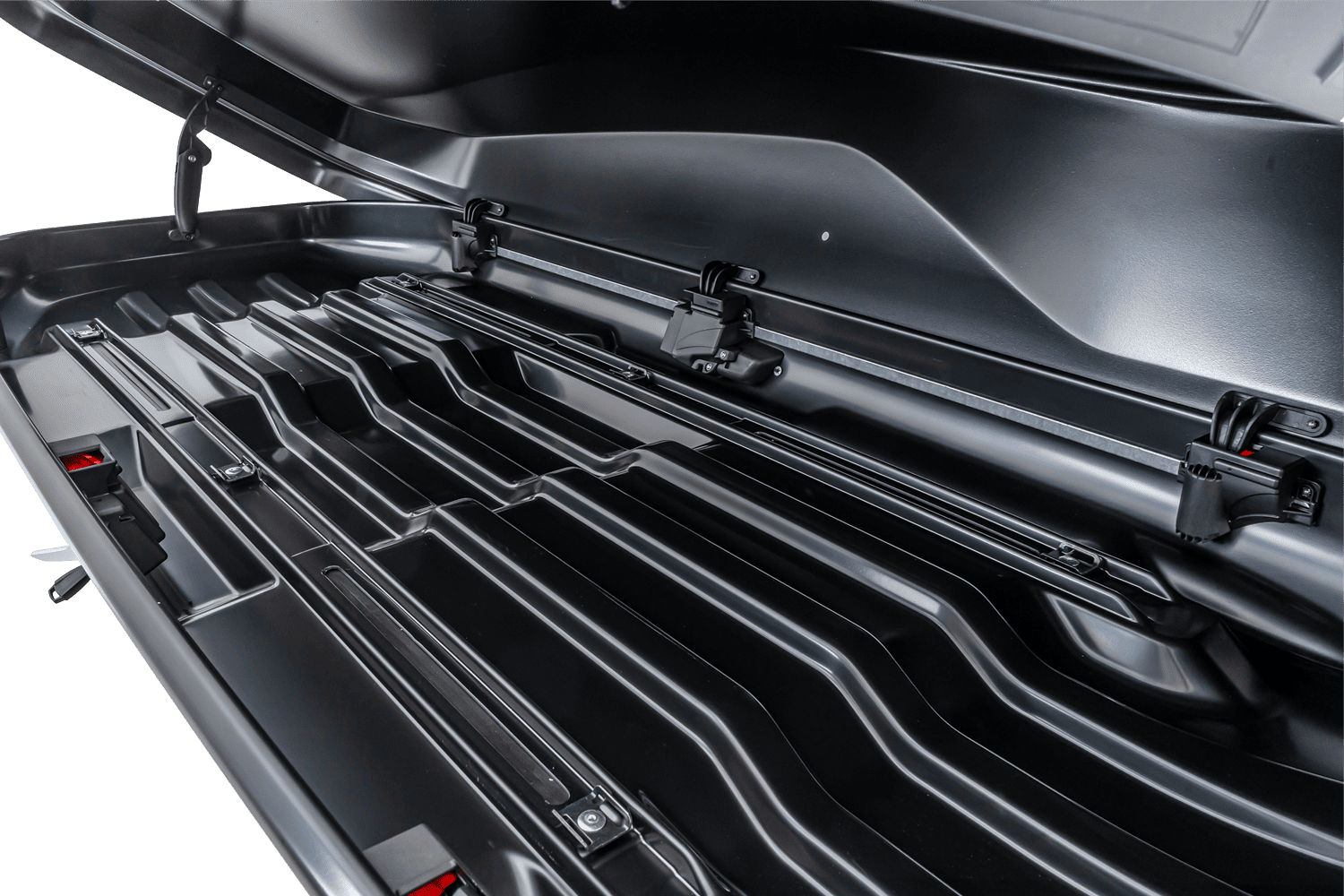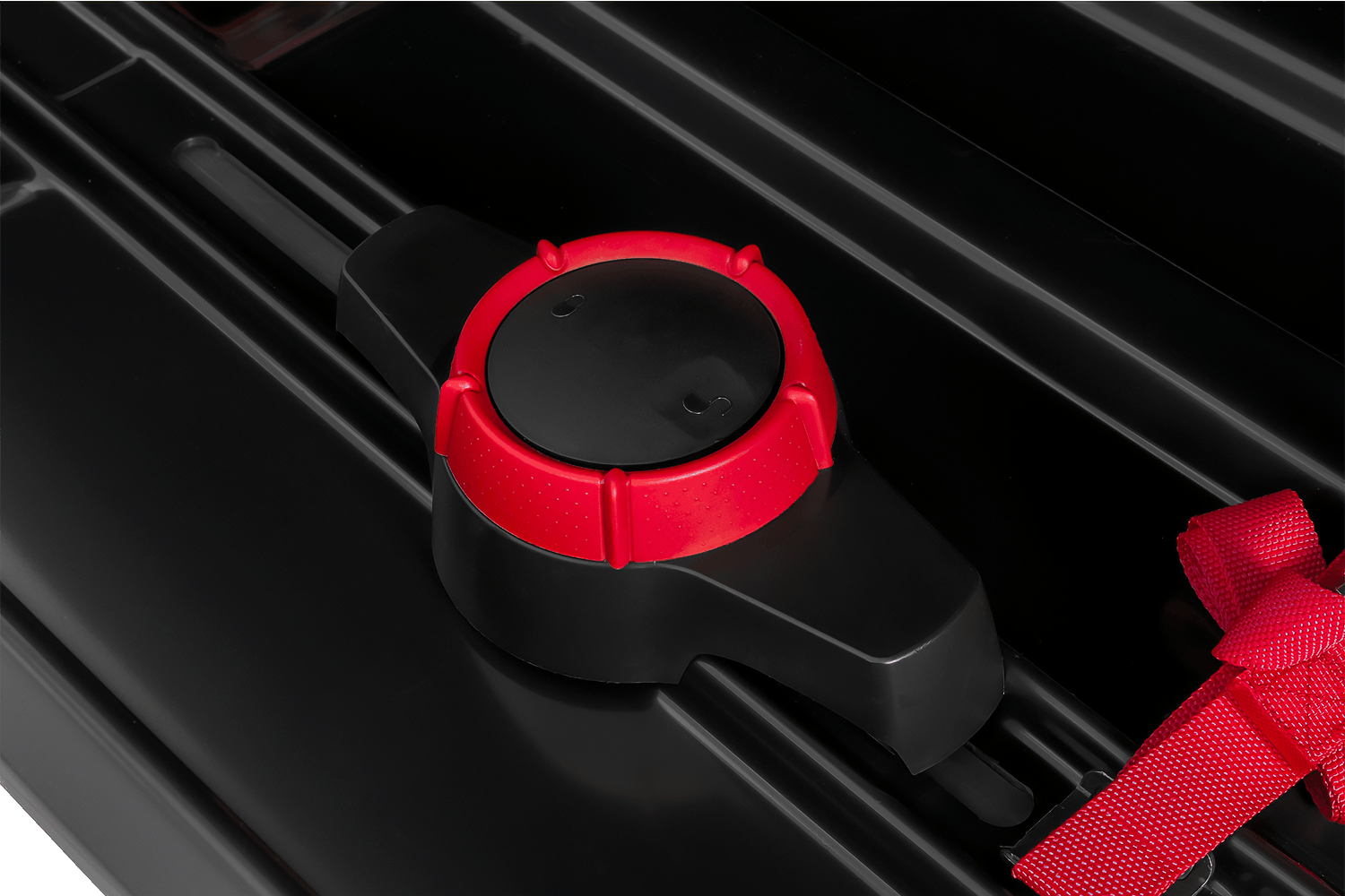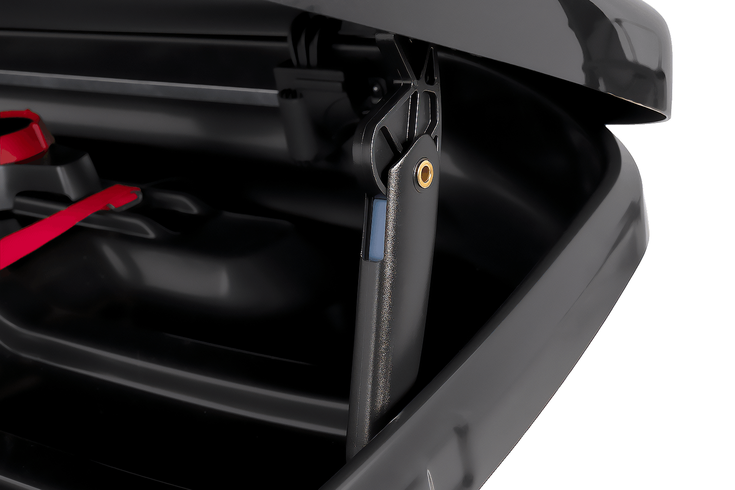 De constructie is gemaakt van hoogwaardig ABS-kunststof, bestand tegen uv-straling en extreme weersomstandigheden , wat zorgt voor een lange levensduur. Het Safe Guard-systeem beschermt het deksel tegen onbedoeld openen en geeft aan wanneer het goed gesloten is, terwijl de driepuntsvergrendeling de vervoerde items beschermt – de sleutel kan pas worden verwijderd nadat de box volledig gesloten is.