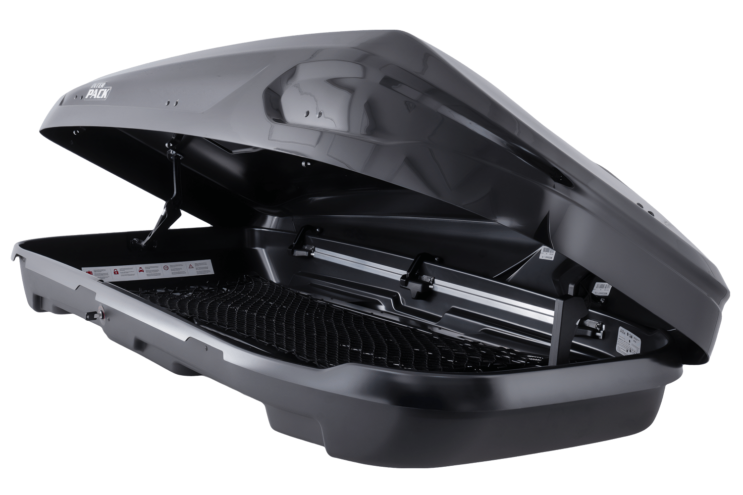 De Inter Pack Monsun L dakkoffer (metallic zwart) is een ruime en stevige dakdrager die perfect is voor familiereizen , vakanties of wintersportvakanties. Met een inhoud van 550 liter en een lengte van 206 cm biedt hij voldoende ruimte voor koffers, tassen en sportuitrusting – inclusief ski's en snowboards tot 185 cm lang .