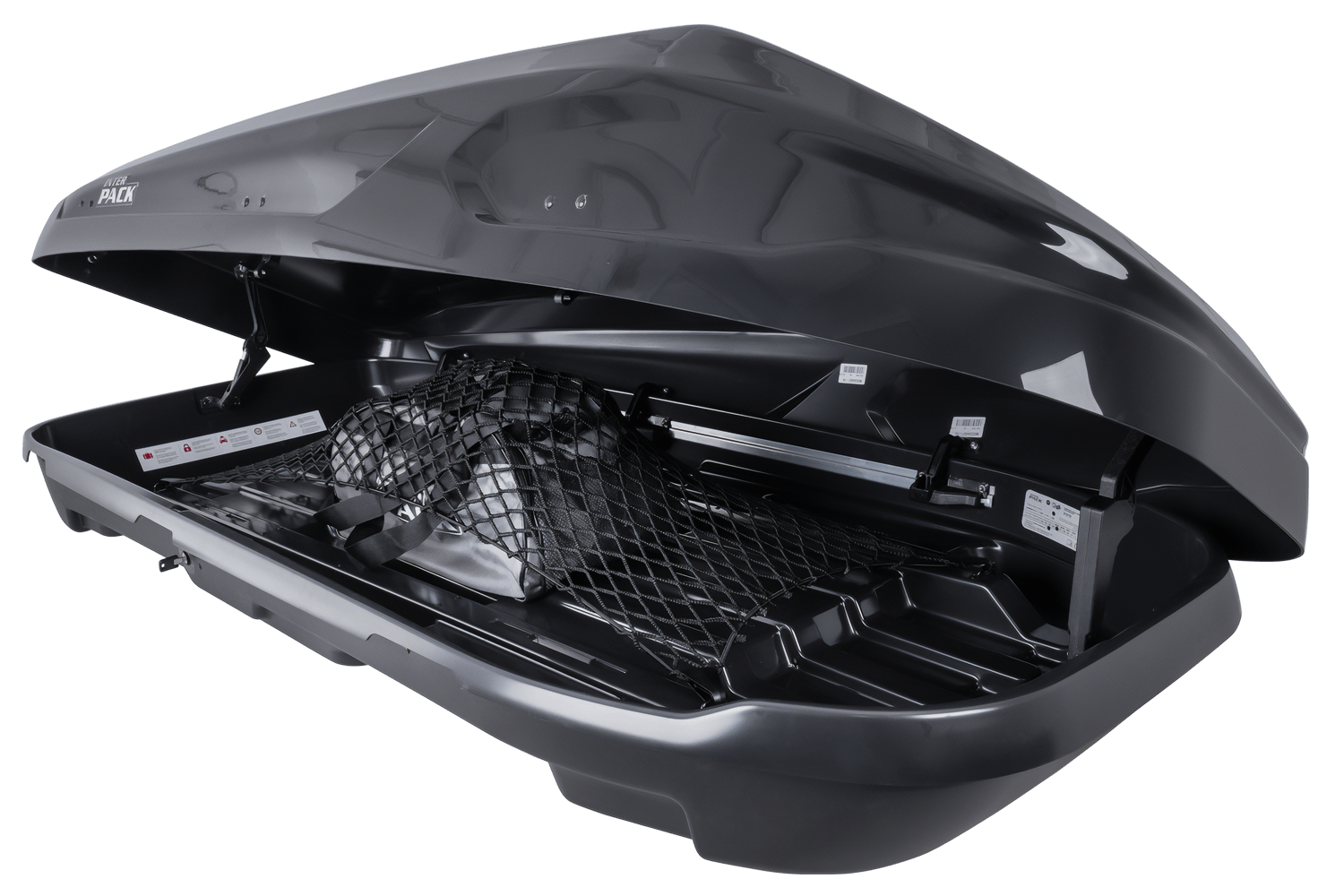 - Inter Pack Monsun L metallic zwart – inhoud 550 l, lengte 206 cm, laadvermogen 75 kg, gewicht 18,4 kg. Geschikt voor koffers, tassen, ski's en snowboards tot 185 cm. Rapid Fit met een dynamometer, tweezijdige opening en centrale vergrendeling zorgen voor
