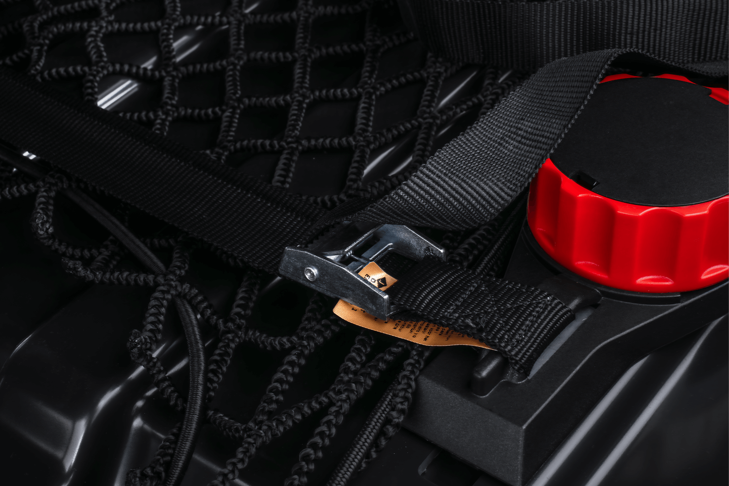 De set bestaat uit textielriemen om bagage vast te zetten en een elastisch net dat gebruikt kan worden bij kortere reizen of wanneer u kleinere hoeveelheden spullen meeneemt.