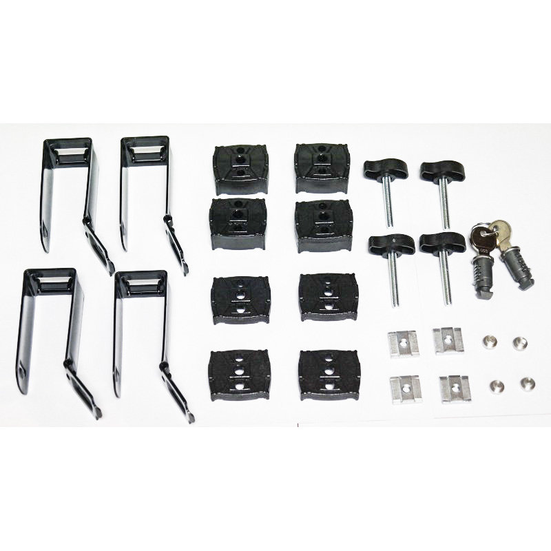 De set bevestigingselementen maakt een eenvoudige montage mogelijk zonder gebruik van extra gereedschap , zowel op stalen balken met een rechthoekige doorsnede als op gestroomlijnde aluminium balken .