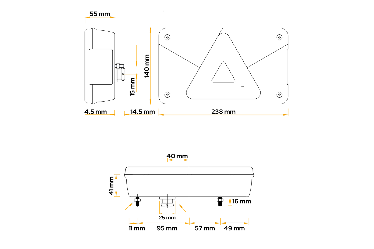 Het Multipoint V LED achterlicht van ASPÖCK is bedoeld voor montage aan de rechterkant van het voertuig en heeft de volgende afmetingen: breedte 238 mm, hoogte 140 mm, diepte 55 mm . Uitgerust met een 5-polige bajonetaansluiting , waardoor een eenvoudige en snelle installatie mogelijk is in aanhangwagens, bussen en takelwagens .