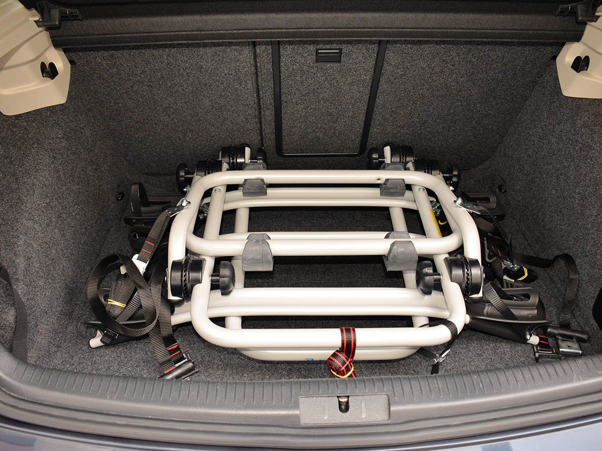 Dankzij de gemonteerde fietsendrager (zonder fietsen) kunt u de kofferbak van uw auto openen en wanneer de handgreep is ingeklapt, neemt deze weinig ruimte in beslag.