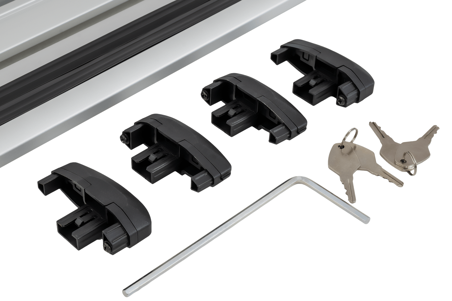 Dankzij het gebruik van relatief lange balken die door de montagevoeten lopen, heeft het rek een aanzienlijke laadcapaciteit: er passen maximaal 4 fietsen op of een bak met 1-2 fietsen.