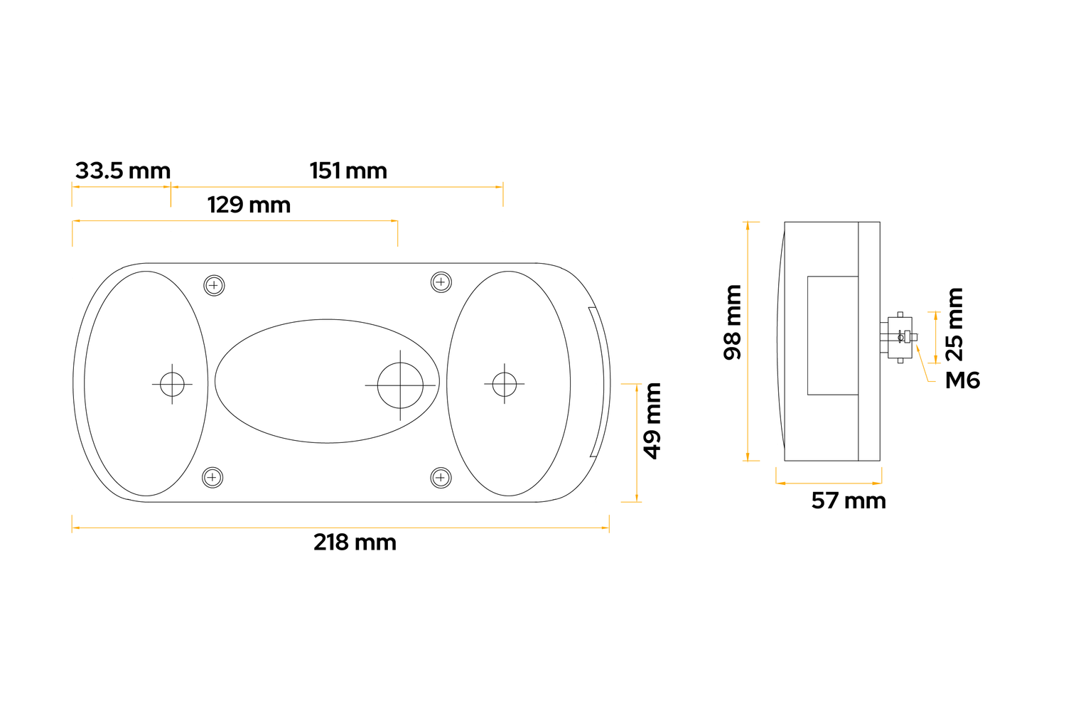 Het Midipoint II achterlicht van ASPÖCK is bedoeld voor montage aan zowel de linker- als de rechterzijde van het voertuig en heeft de volgende afmetingen: breedte 218 mm, hoogte 98 mm, diepte 57 mm . Uitgerust met een 5-polige bajonetaansluiting , waardoor een eenvoudige en snelle installatie mogelijk is in aanhangwagens, bussen en takelwagens .
