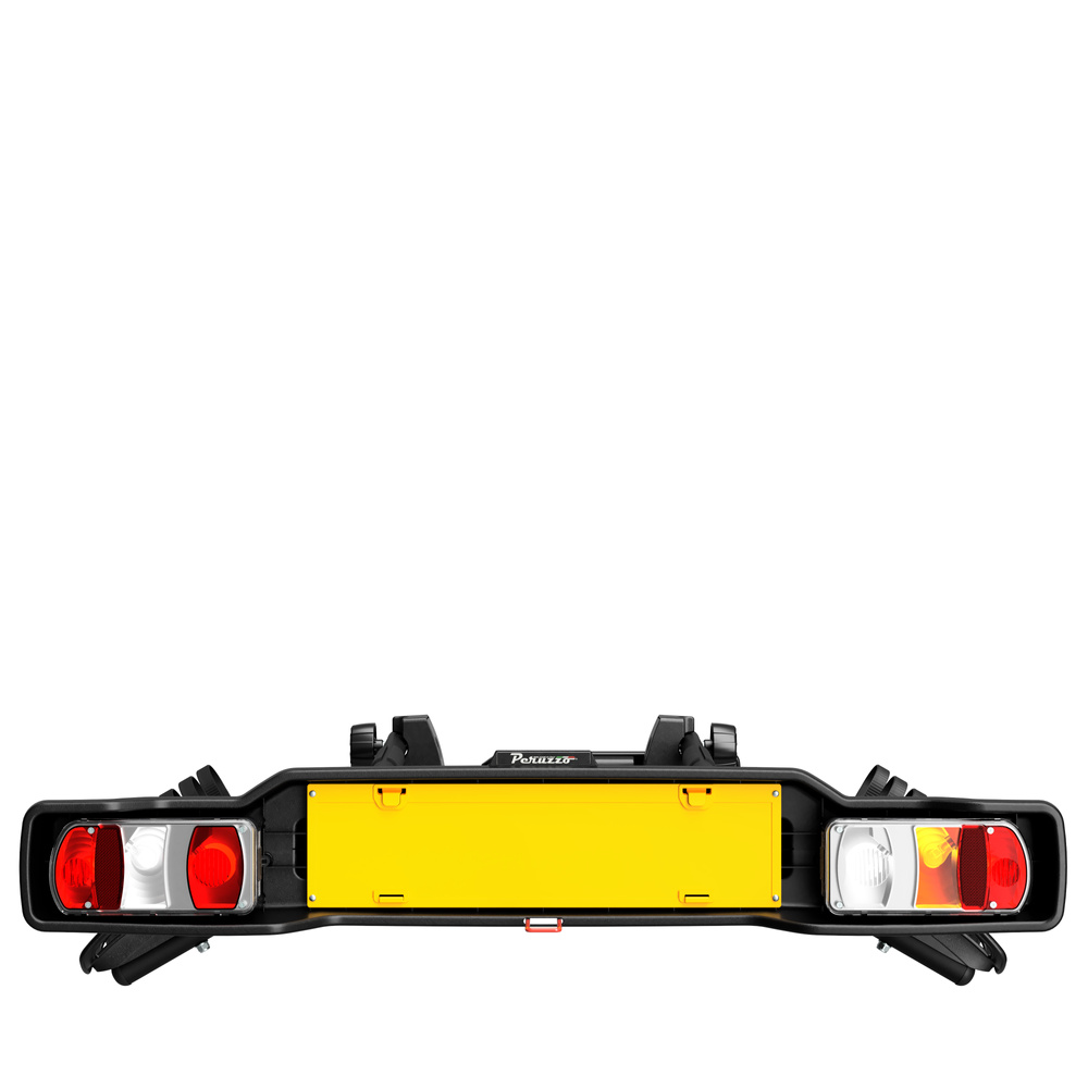 - De Parma fietsendrager is uitgerust met een intuïtief en eenvoudig montagesysteem op de trekhaak. Om de fietsendrager op de trekhaak te monteren, drukt u eenvoudig op de hendel.