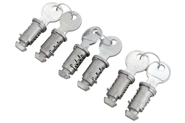 Universele sloten voor fietsendragers, dakdragers, sportdragers of veiligheidsknoppen. De slotinzetstukken in de set hebben hetzelfde inzetstuk en sleutelnummer.