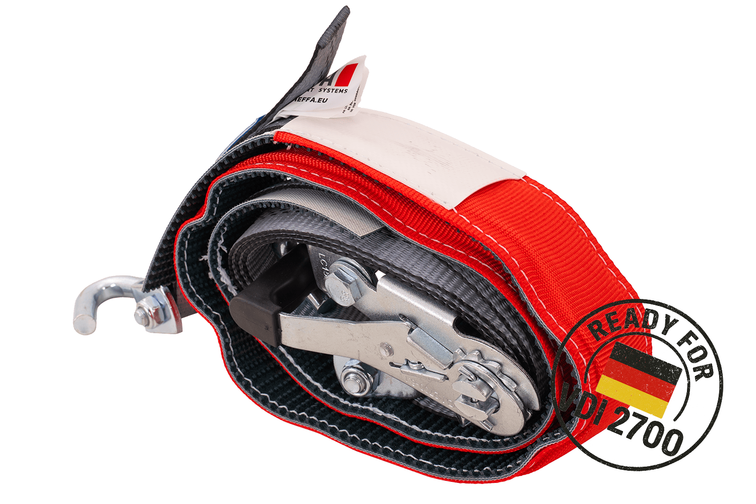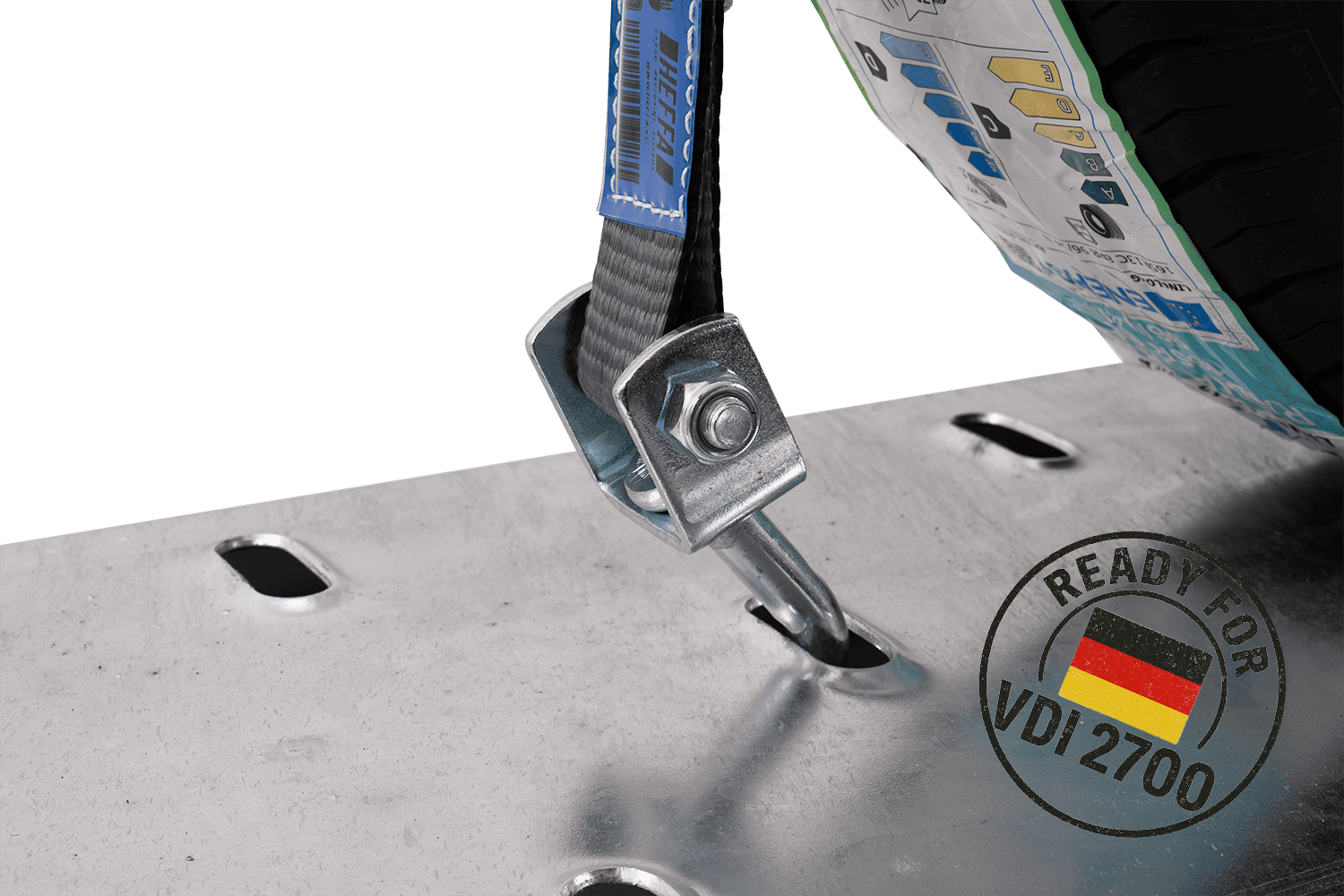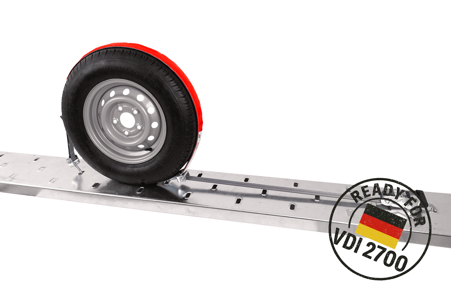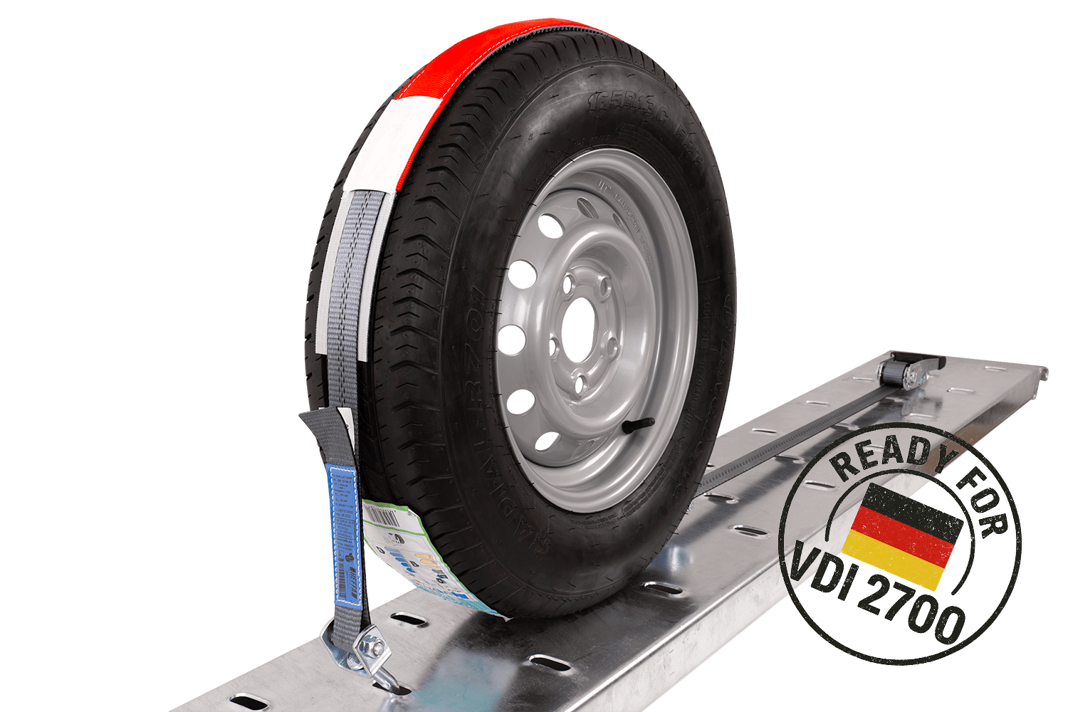 De VDI 2700 deel 8.1 richtlijn is een Duitse technische norm die gedetailleerde eisen specificeert voor het vastzetten van voertuigen die worden vervoerd op diepladers en aanhangwagens . Met betrekking tot spanbanden, met wielsjorren, specificeert deze richtlijn onder andere de methode van riemopstelling, het vereiste aantal sjorpunten (bijv. 3-puntssysteem), minimale spankrachtparameters en de principes van hun markering en technische goedkeuringen. Naleving van VDI 2700 8.1 betekent dat de banden voldoen aan strenge eisen op het gebied van veiligheid, betrouwbaarheid en effectiviteit van immobilisatie van het getransporteerde voertuig , wat cruciaal is voor professioneel transport van personenauto's en bestelwagens. Hierdoor kan de gebruiker er zeker van zijn dat het gebruikte sjorsysteem voldoet aan de huidige Europese en Duitse normen op het gebied van verkeersveiligheid.