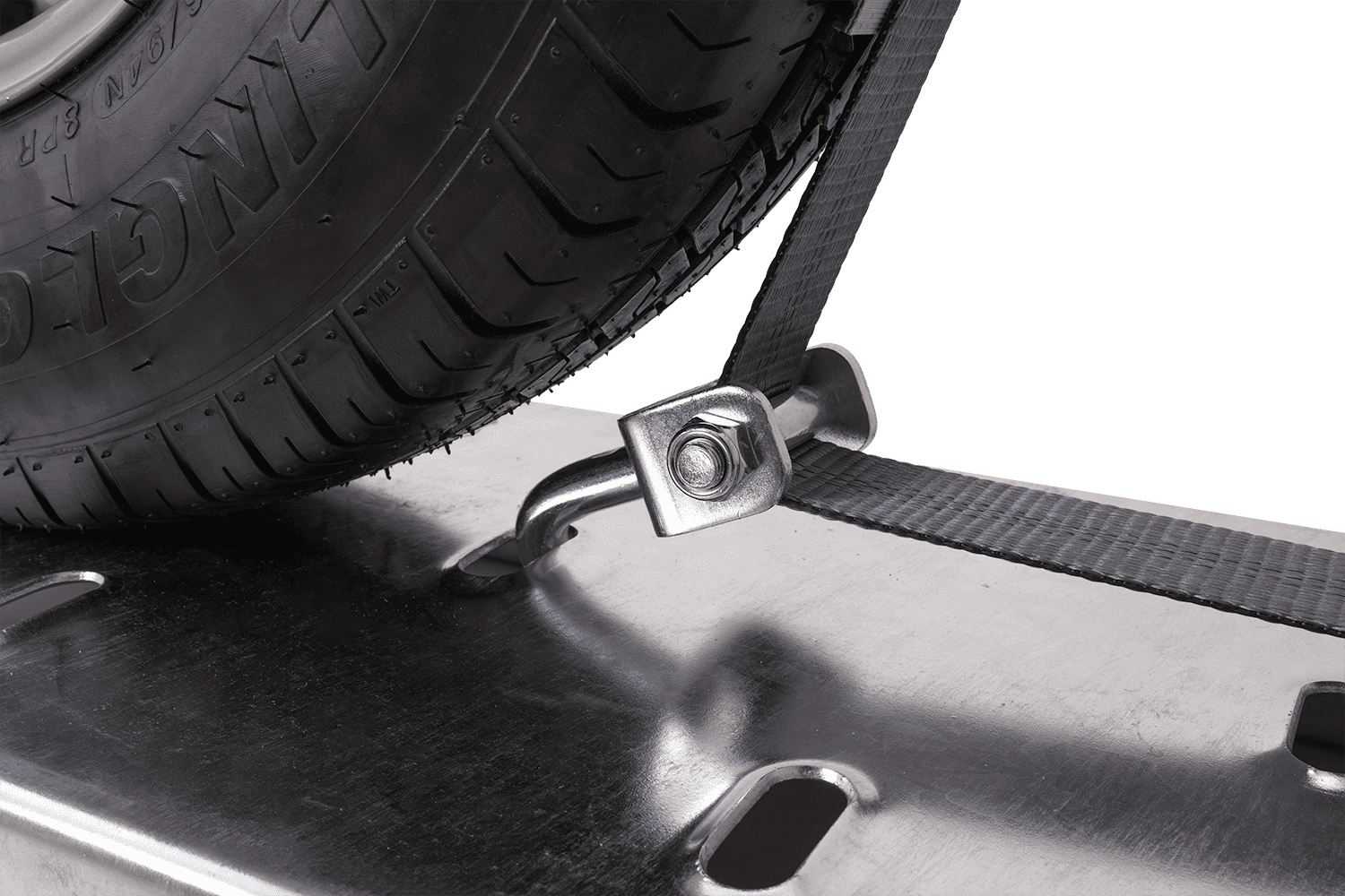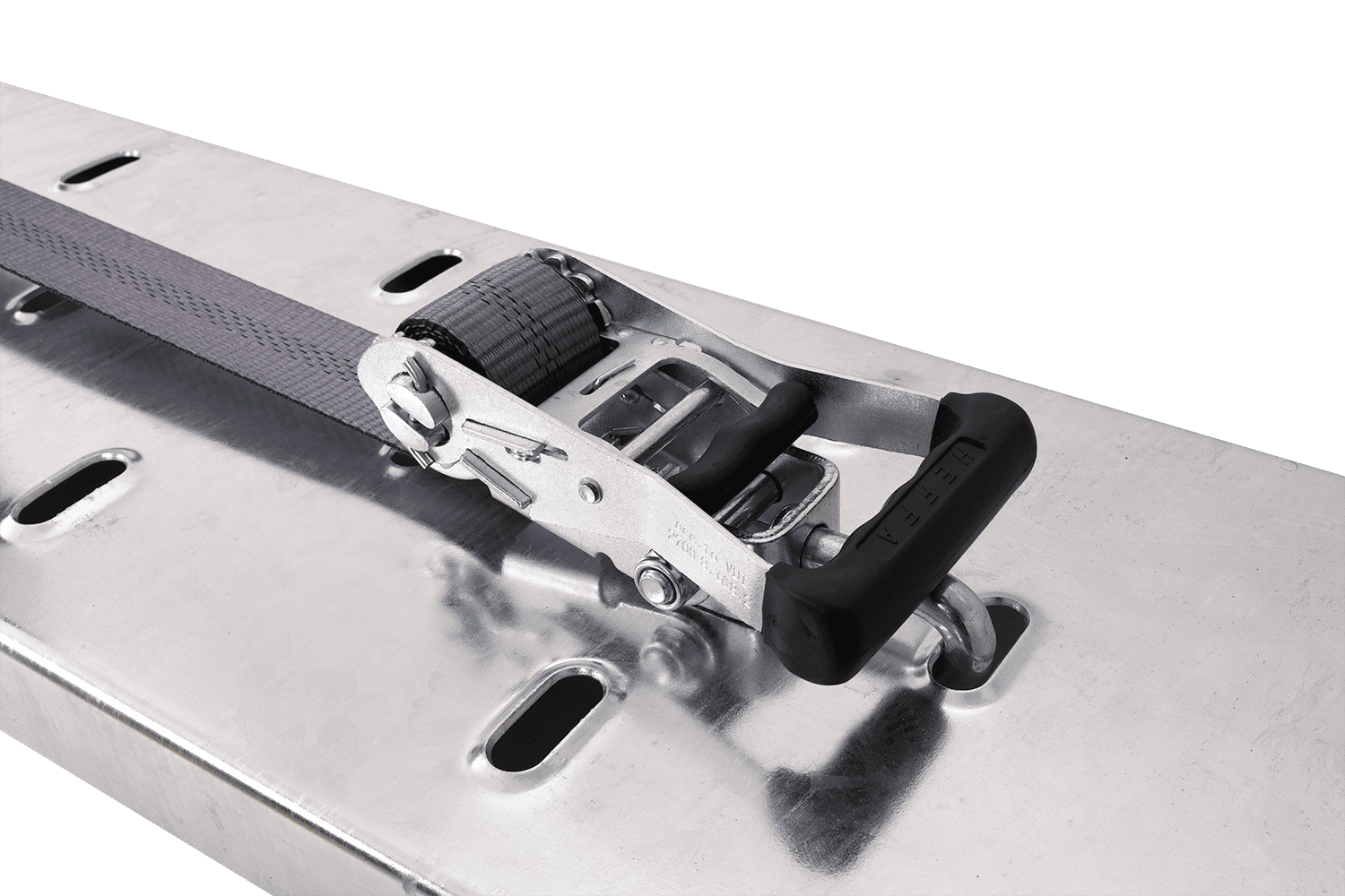 - Vier HEFFA-transportbanden, elk 5 m lang en 5 ton sterk, voor het vastzetten van voertuigwielen door de band op de trailers vast te sjorren. Ze zijn voorzien van een driepuntsbevestigingssysteem dat zorgt voor een effectieve stabilisatie van de auto op he
