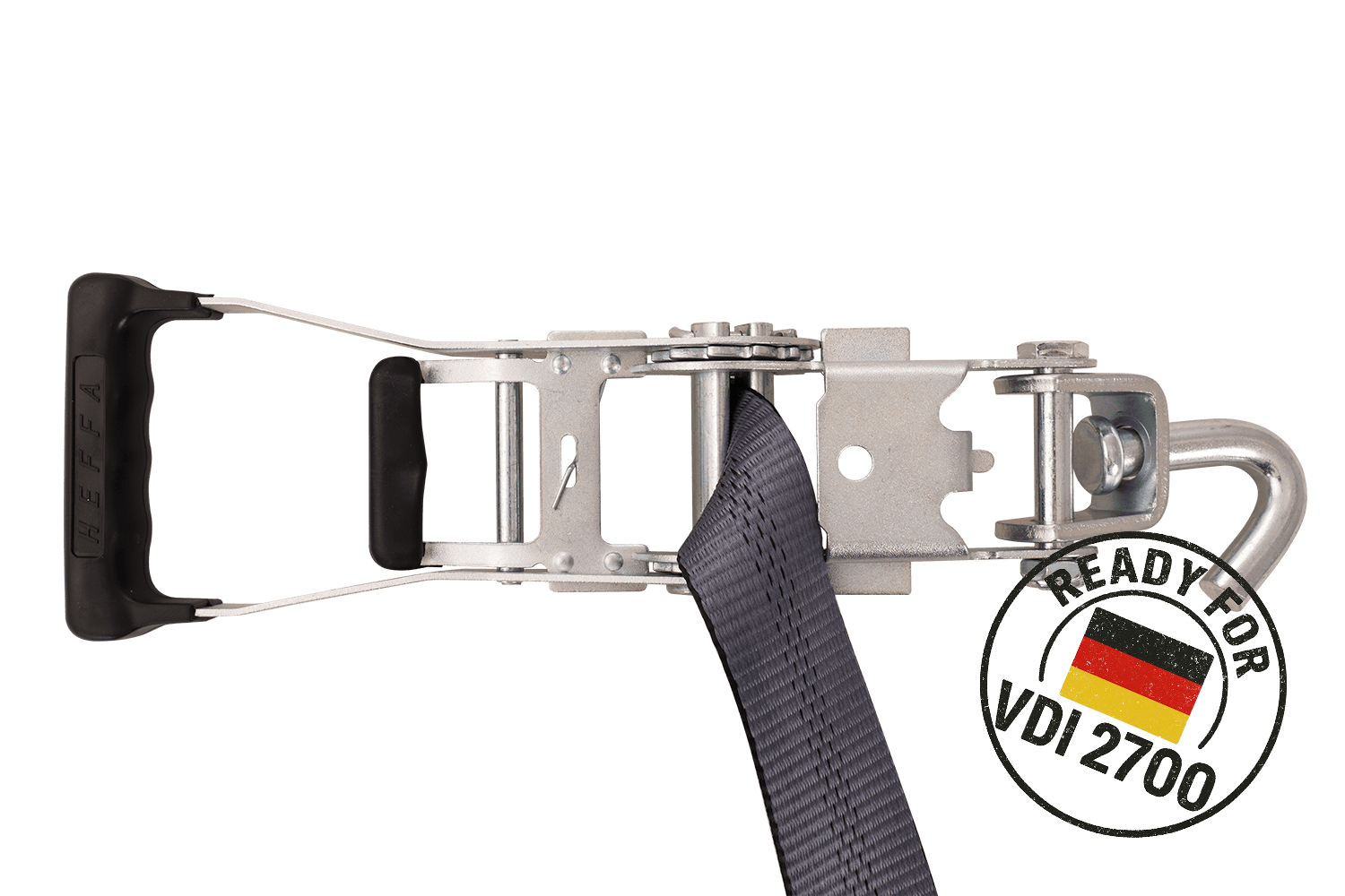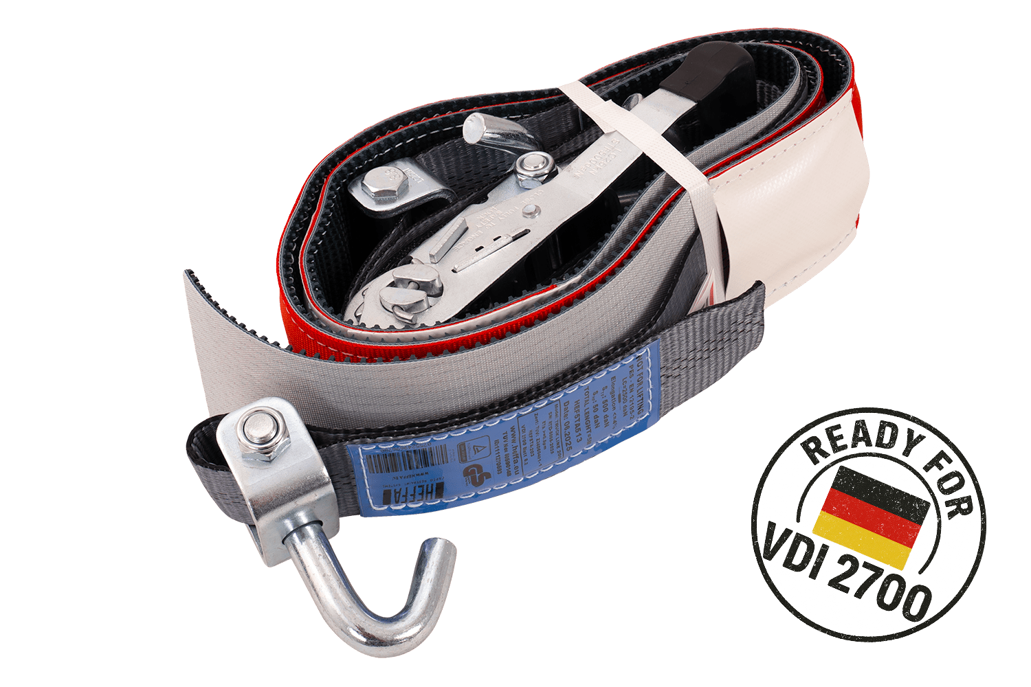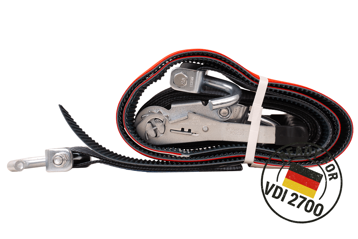 De VDI 2700 deel 8.1 richtlijn is een Duitse technische norm die gedetailleerde eisen specificeert voor het vastzetten van voertuigen die worden vervoerd op diepladers en aanhangwagens . Met betrekking tot spanbanden, met wielsjorren, specificeert deze richtlijn onder andere de methode van riemopstelling, het vereiste aantal sjorpunten (bijv. 3-puntssysteem), minimale spankrachtparameters en de principes van hun markering en technische goedkeuringen. Naleving van VDI 2700 8.1 betekent dat de banden voldoen aan strenge eisen op het gebied van veiligheid, betrouwbaarheid en effectiviteit van immobilisatie van het getransporteerde voertuig , wat cruciaal is voor professioneel transport van personenauto's en bestelwagens. Hierdoor kan de gebruiker er zeker van zijn dat het gebruikte sjorsysteem voldoet aan de huidige Europese en Duitse normen op het gebied van verkeersveiligheid.