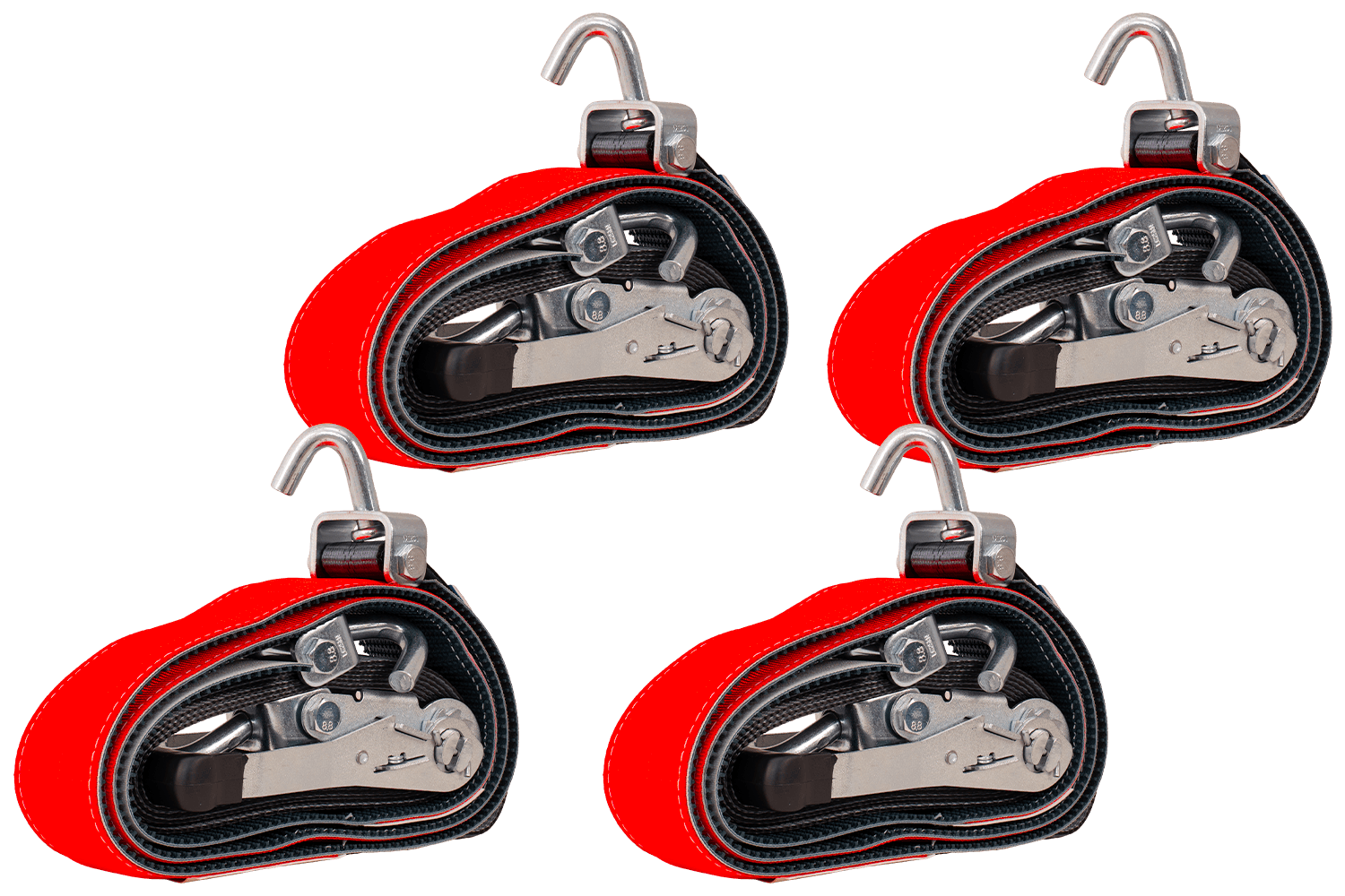 Set van vier HEFFA CARLINE 130 aanhangwagentransportbanden, wielborgriemen 5m/50mm/5t VDI 2700