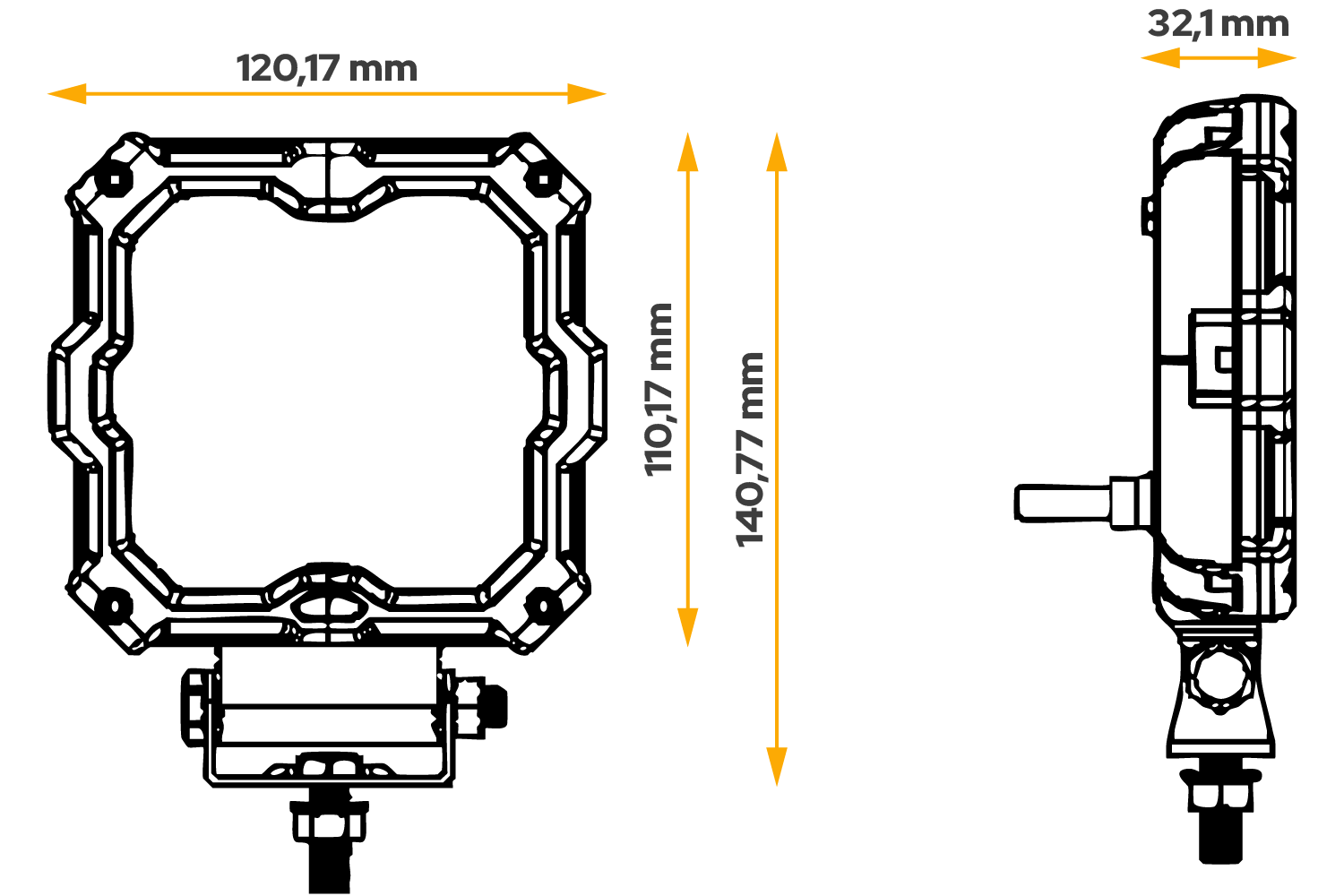 De X-SPIDER 2 werklamp van KAMAR is een universele led- lichtbron, ontworpen voor gebruik in zware omstandigheden. Hij is ideaal voor bedrijfsvoertuigen, landbouwmachines, bouwmachines en terreinvoertuigen, evenals voor boten en als extra verlichting voor bussen en vrachtwagens. De lamp heeft een robuust ontwerp van 120 mm breed, 110 mm hoog en 32 mm diep en werkt binnen een spanningsbereik van 12-24 V. Een kabel van 0,3 m zorgt voor eenvoudige installatie en aansluiting, zelfs op moeilijk bereikbare plaatsen. De behuizing van de lamp is gemaakt van duurzame materialen, waardoor hij bestand is tegen schokken en mechanische schade onder veeleisende werkomstandigheden.