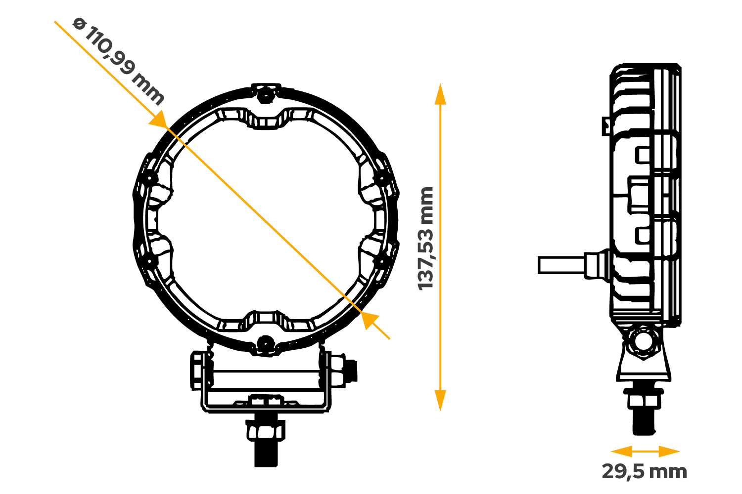 De X-SPIDER 3 werklamp van KAMAR is een universele led- lichtbron, ontworpen voor gebruik in zware omstandigheden. Hij is ideaal voor bedrijfsvoertuigen, landbouwmachines, bouwmachines en terreinvoertuigen, evenals boten en als extra verlichting voor bussen en vrachtwagens. De lamp heeft een robuust ontwerp met een diameter van 111 mm en een diepte van 29,5 mm en werkt binnen een spanningsbereik van 12-24 V. Een kabel van 0,3 m zorgt voor eenvoudige installatie en aansluiting, zelfs op moeilijk bereikbare plaatsen. De behuizing van de lamp is gemaakt van duurzame materialen, waardoor hij bestand is tegen schokken en mechanische schade onder veeleisende werkomstandigheden.