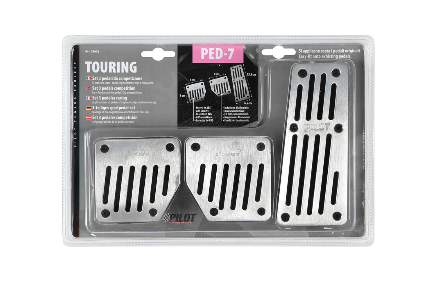 De TOURING BLACK aluminium pedaalhoezen van LAMPA zijn een praktische en stijlvolle manier om het interieur van uw auto te vernieuwen en het rijcomfort te verbeteren. De set bestaat uit hoezen voor het gas-, rem- en koppelingspedaal . Ze zijn gemaakt van lichtgewicht, duurzaam aluminium met een zwarte afwerking en combineren een elegant, touring design met functionaliteit, wat zorgt voor meer zelfvertrouwen tijdens het dagelijks rijden en langere ritten.