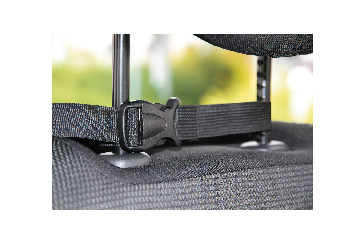 Een transparant tabletvak stelt u in staat het touchscreen te bedienen zonder het apparaat te verwijderen , terwijl het tegelijkertijd beschermd is tegen vuil. Duurzame gespen en verstelbare banden rond de hoofdsteun zorgen voor een veilige bevestiging aan de rugleuning, en het plaatsen en verwijderen is een fluitje van een cent.