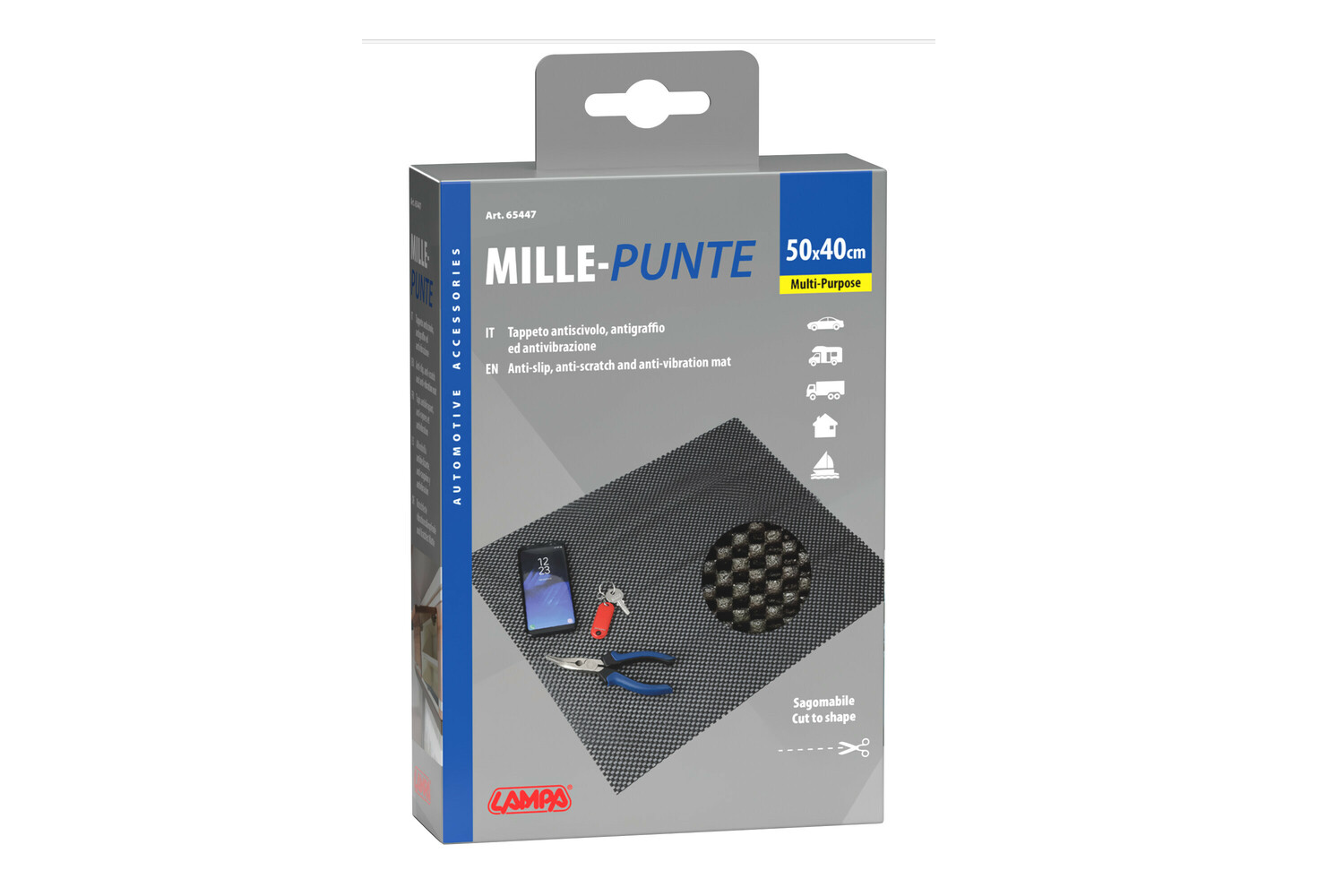 - Deze antislipmat van 50x40 cm van LAMPA is een praktische mat die kleine voorwerpen stabiliseert tijdens het rijden. Hij is ontworpen voor het dashboard van de auto, maar kan ook thuis of op kantoor gebruikt worden als onderlegger voor accessoires.