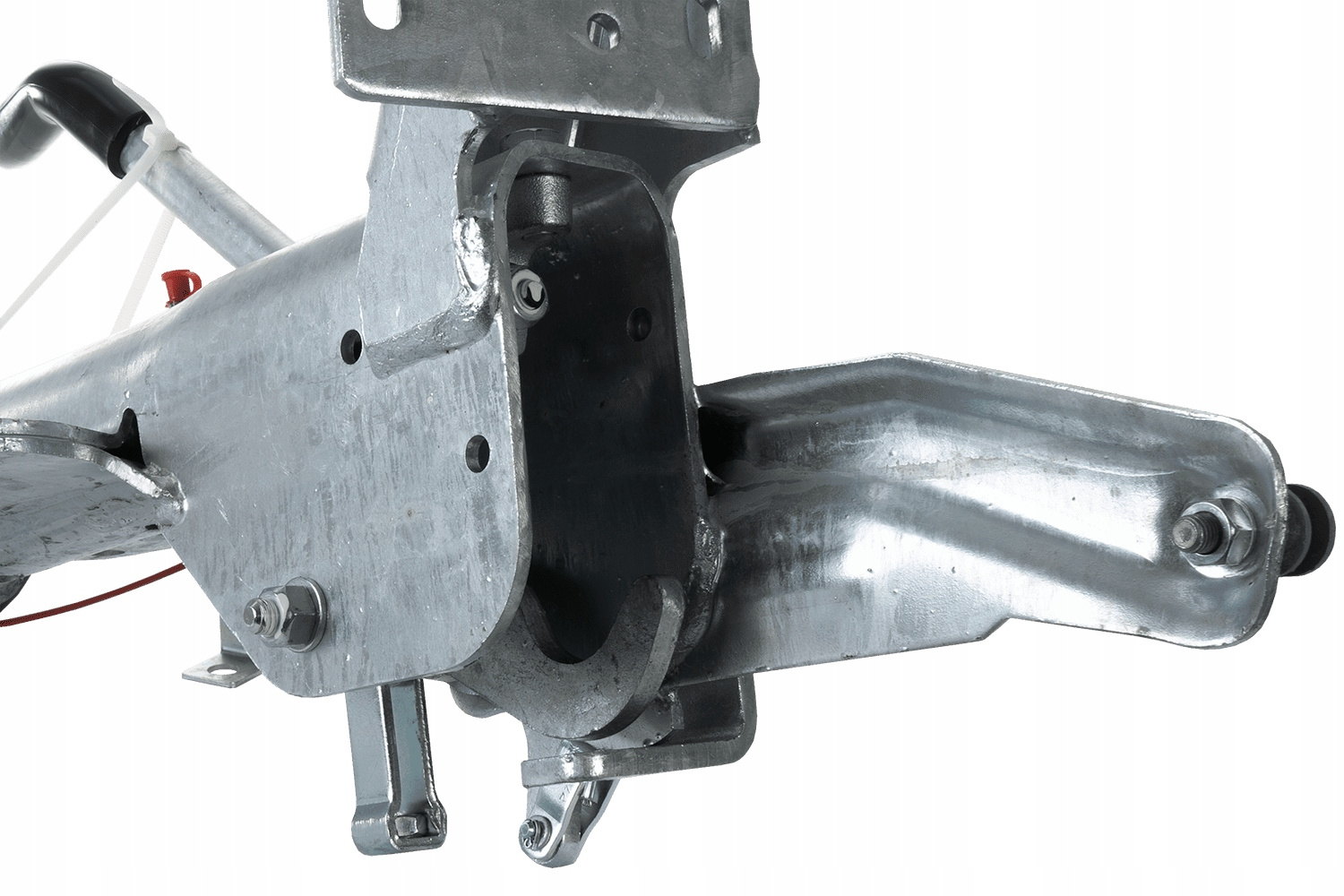 Het apparaat biedt twee montagemogelijkheden: boven- of onderaan de dissel, wat flexibiliteit biedt voor verschillende aanhangerontwerpen. Houd er echter rekening mee dat bij montage onderaan de maximaal toegestane hoogte van de dissel 100 mm is. Deze veelzijdigheid in montage maakt optimalisering van de gewichtsverdeling, aanpassing aan verschillende trailerontwerpen en aanpassing aan specifieke toepassingsvereisten mogelijk, waardoor de veiligheid en efficiëntie van het apparaat in een verscheidenheid aan toepassingen wordt gegarandeerd.
