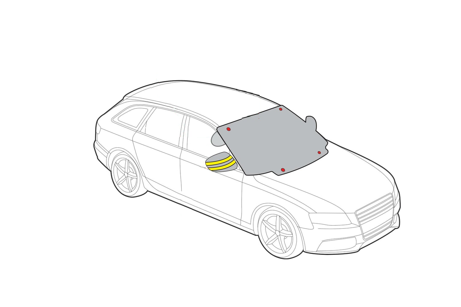 • Deze magnetische mat voor voorruit en zijspiegels is een all-season hoes met een afmeting van 147 x 185 x 120 cm. Hij past op de meeste auto's, voorkomt vorst in de winter, vermindert de warmte in het interieur in de zomer en beschermt het hele seizoen te
