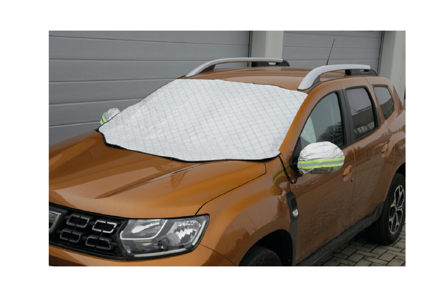 De 4 Seasons Magnetische Voorruit- en Zijspiegelhoes is een universele all-season hoes die geschikt is voor de meeste auto's. De afmetingen zijn 147 x 185 x 120 cm . Twee speciale hoezen met reflecterende inzetstukken bedekken de voorruit en spiegels volledig , waardoor de zichtbaarheid van uw geparkeerde auto in het donker wordt verbeterd.