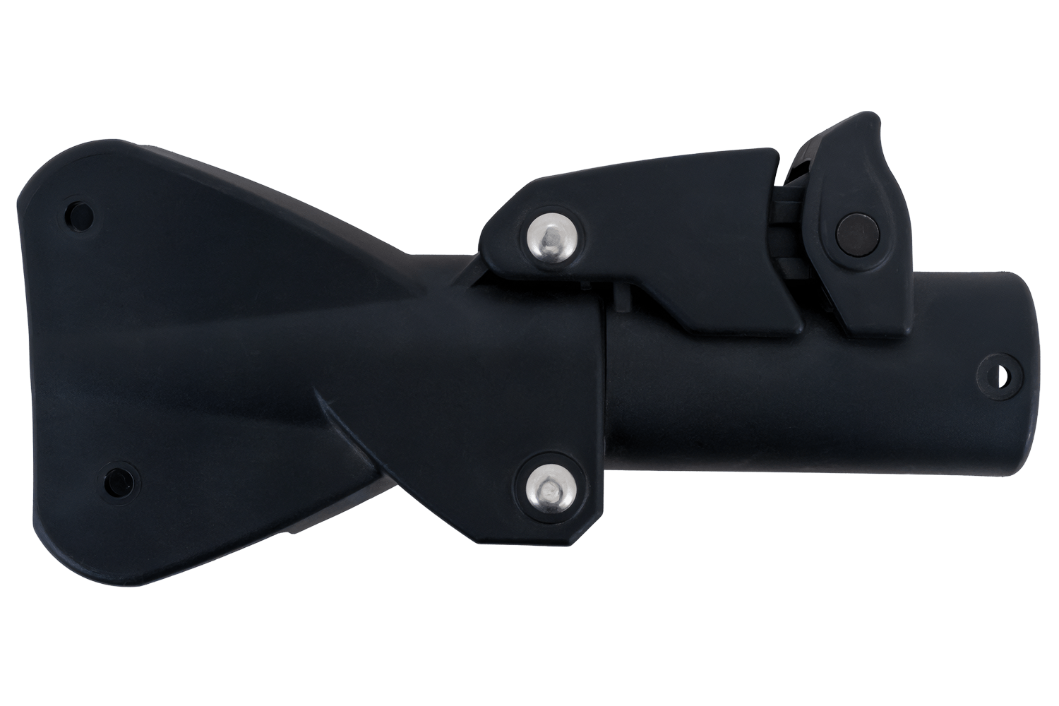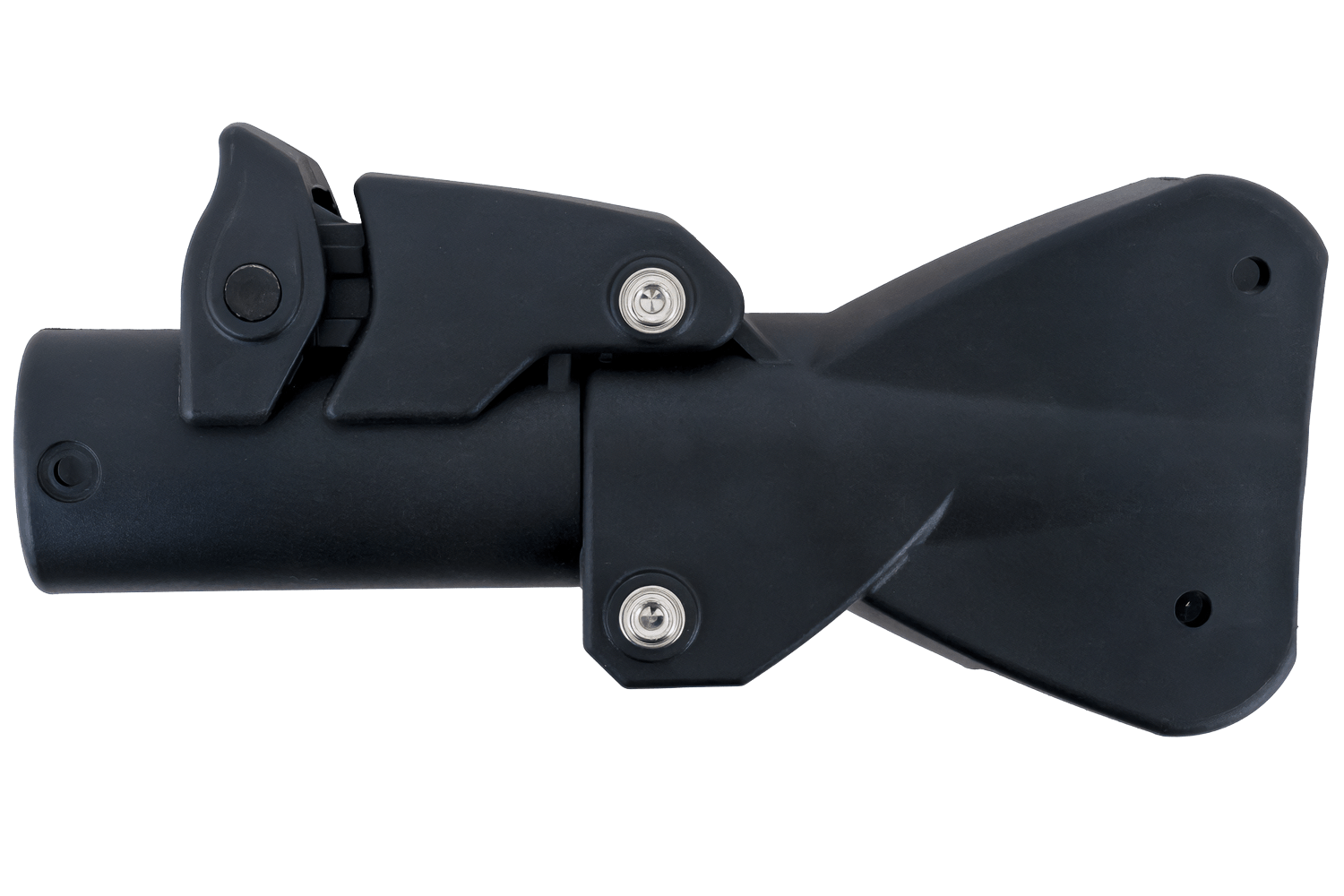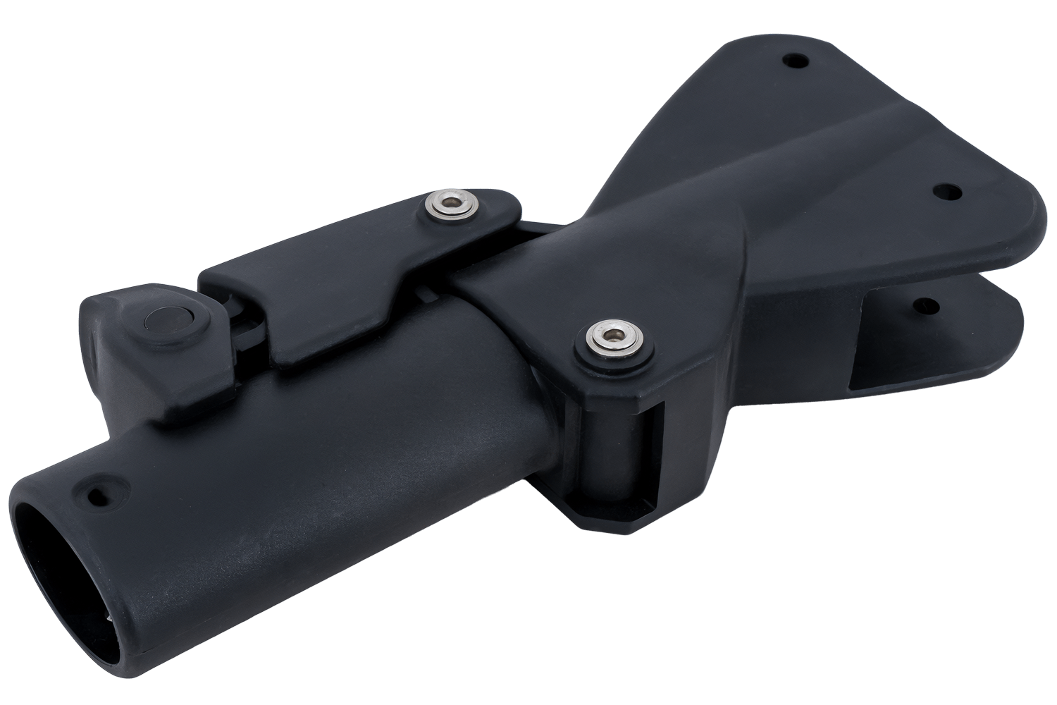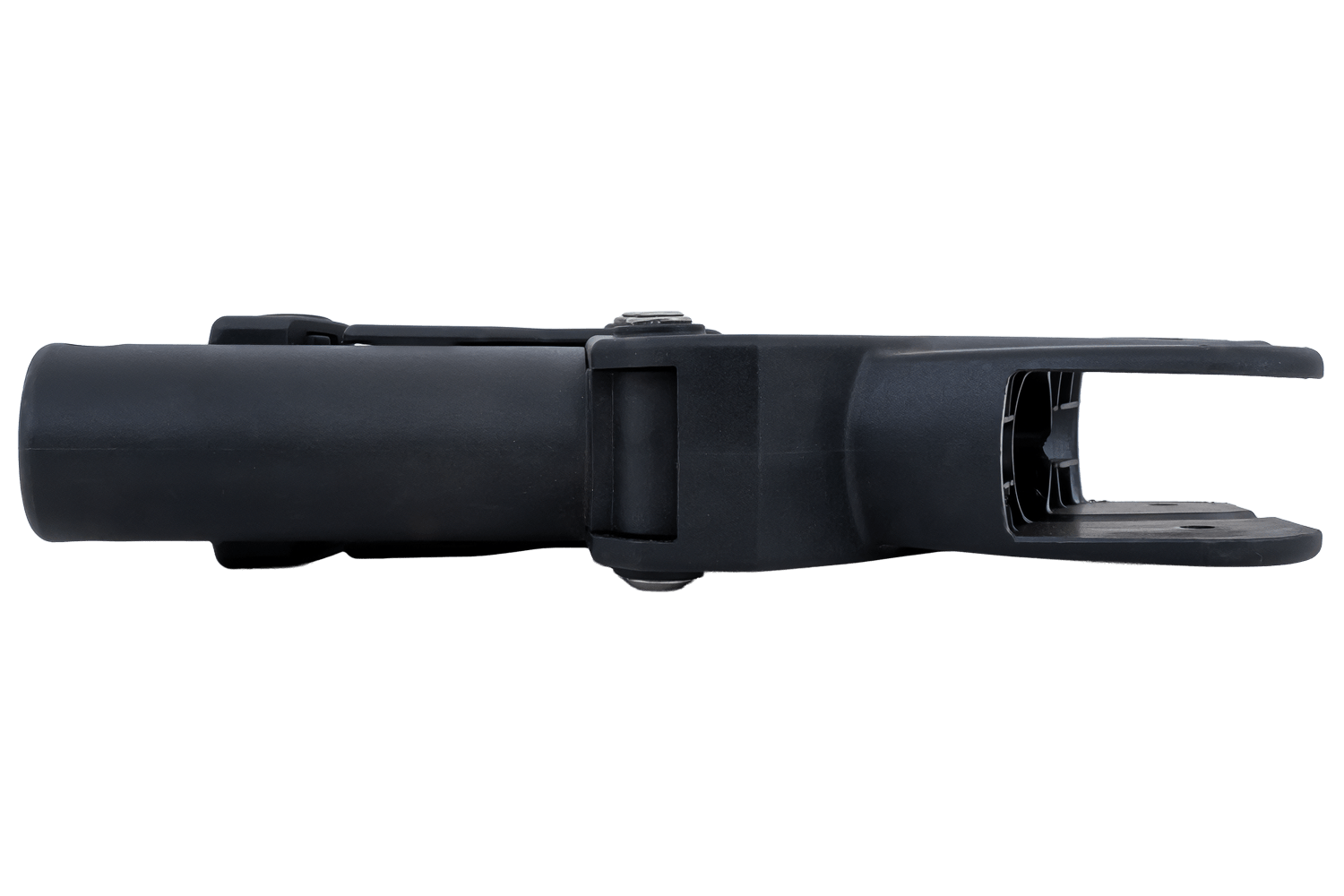 Een scharnier voor de rolbeugel van het Strada EVO-platform waarmee het platform gedeeltelijk kan worden neergeklapt.