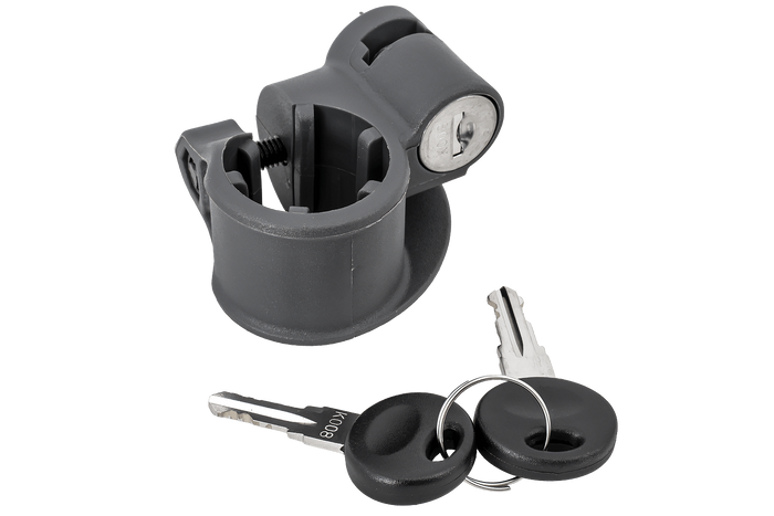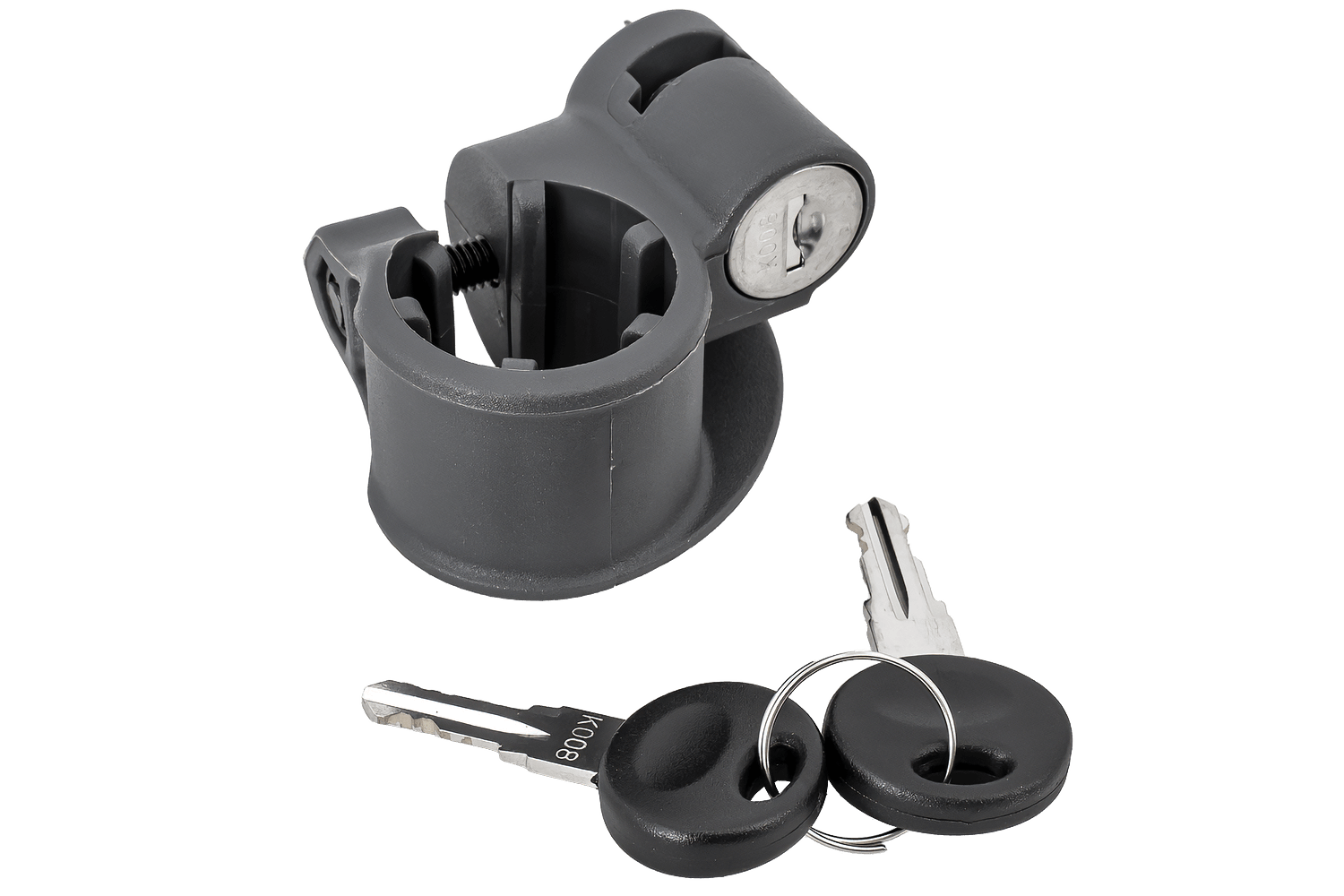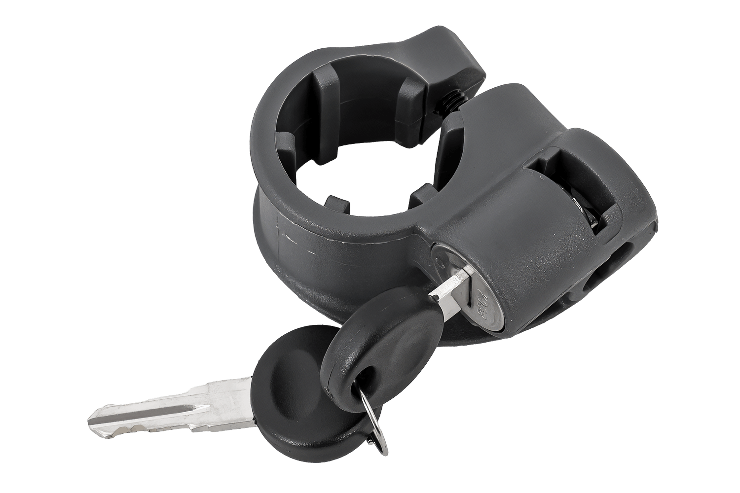Een montagebeugel voor het vastzetten van fietsen tijdens transport. Compatibel met Inter Pack Spider fietsendragers die dit type fietsslot hebben (bijv. Inter Pack Spider 4).